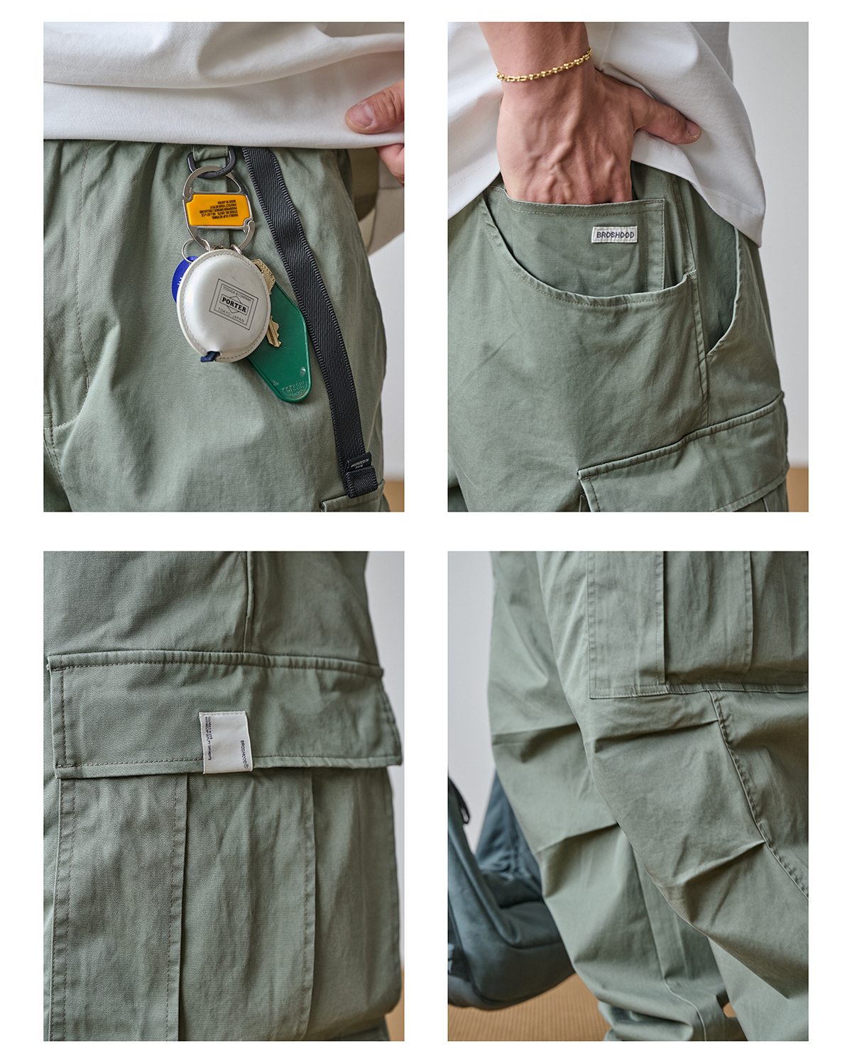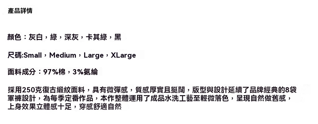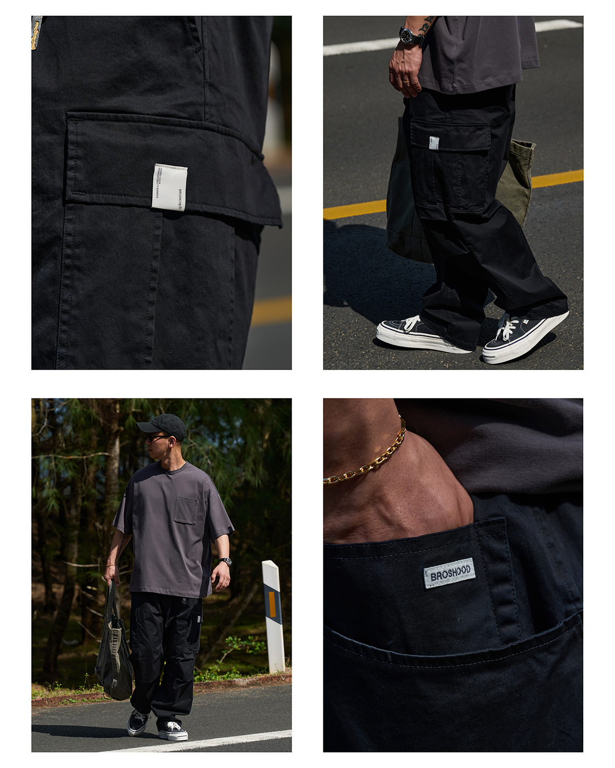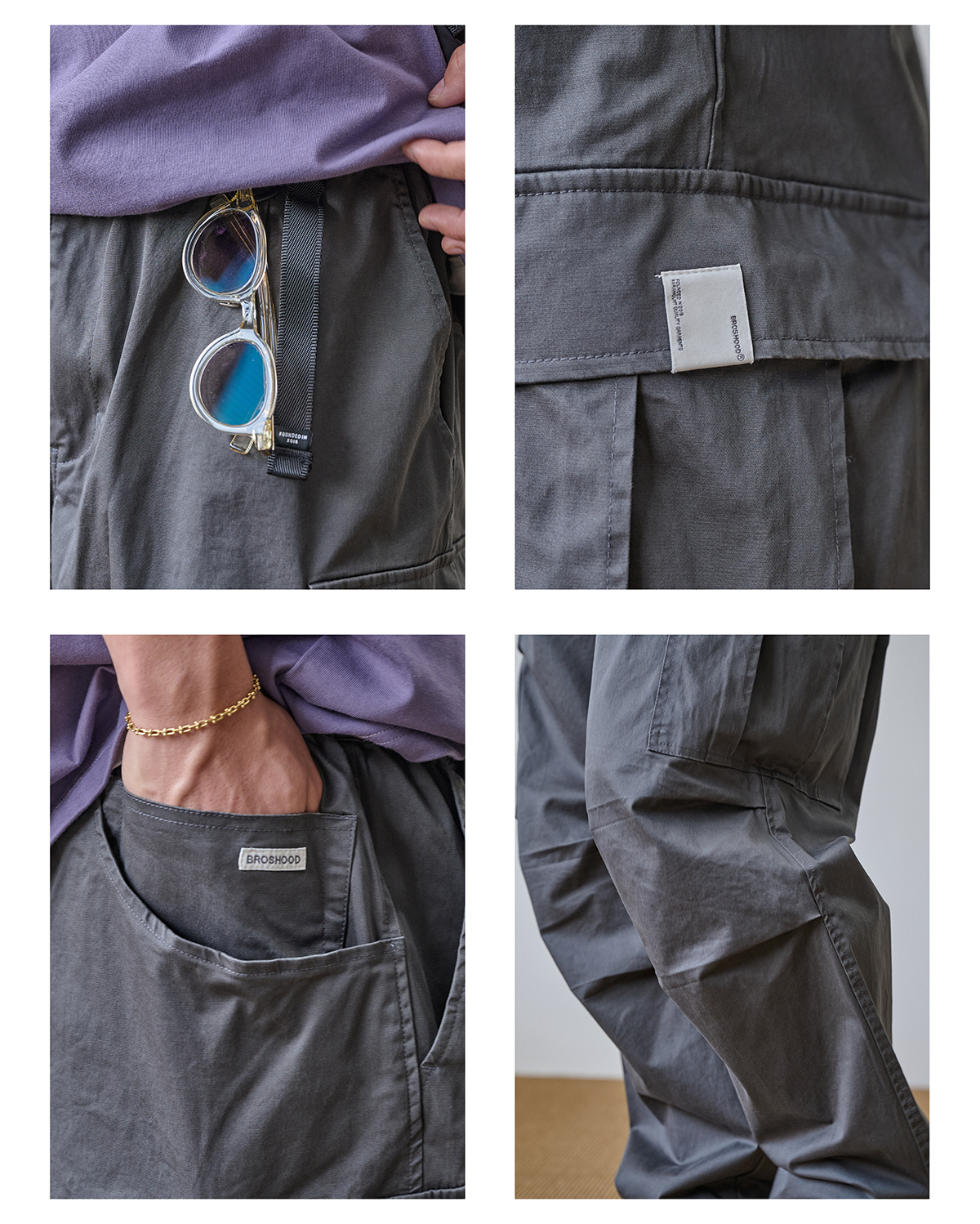 「Broshood」24AW01 日系復古寬鬆輕水洗八口袋工裝休閒長褲