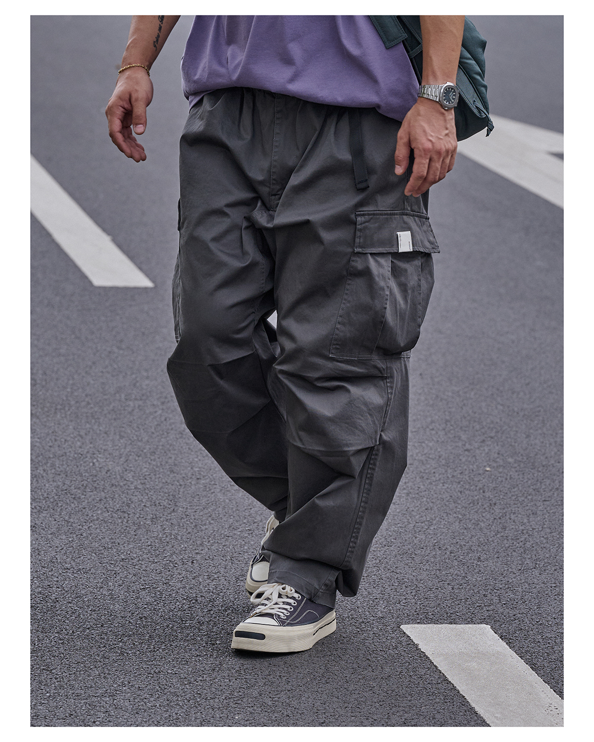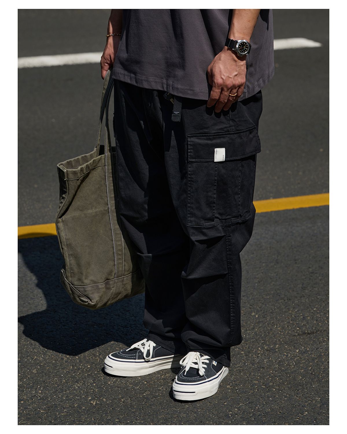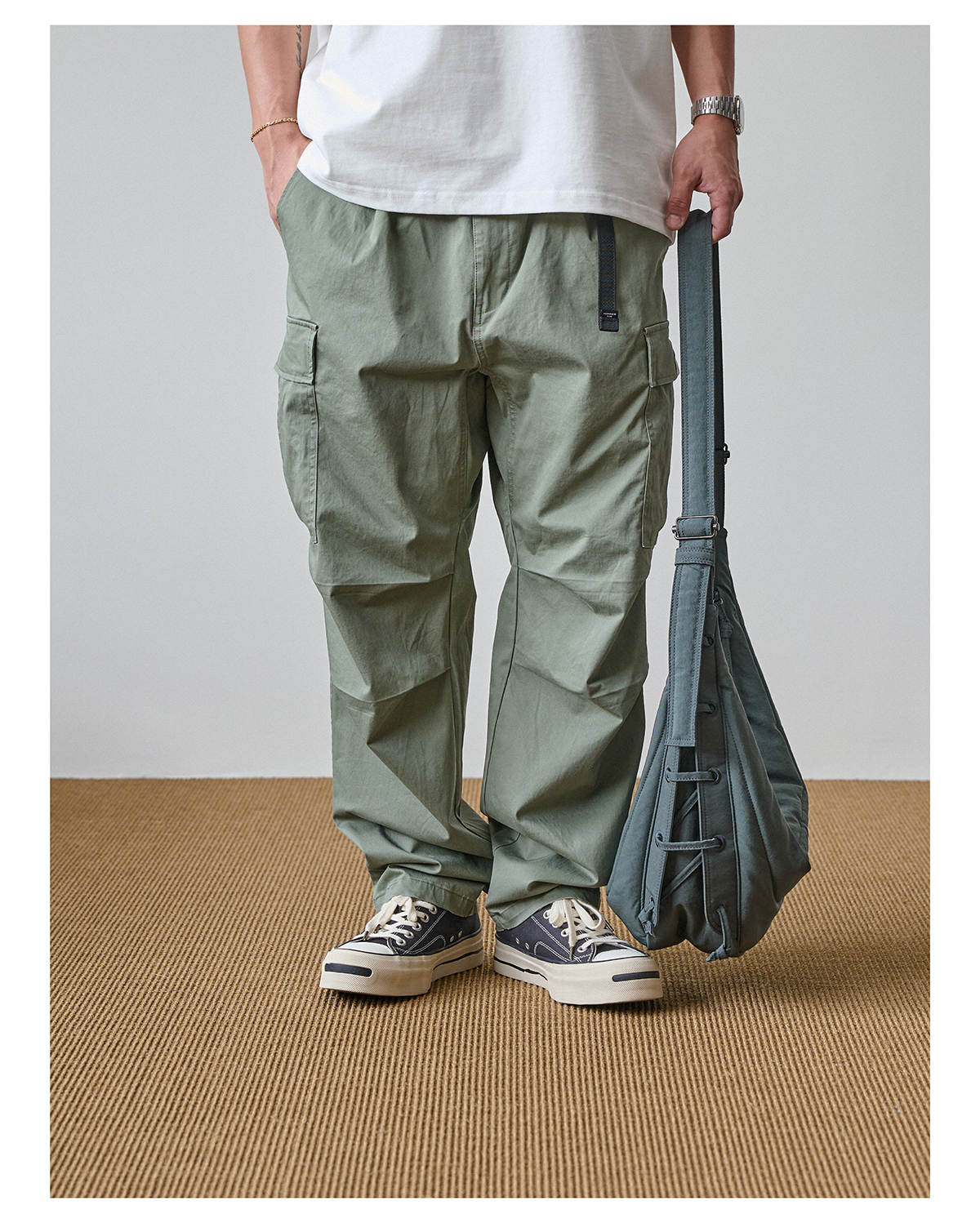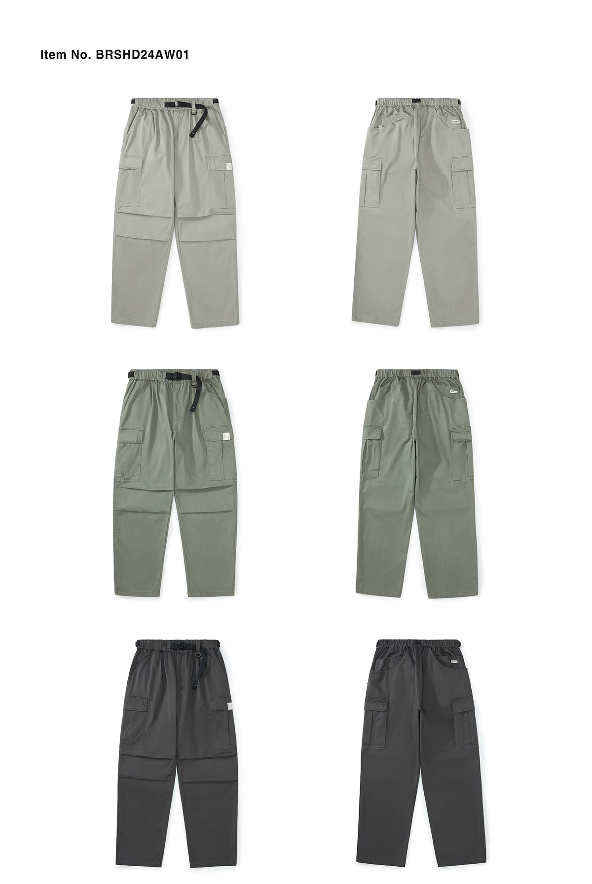 「Broshood」24AW01 日系復古寬鬆輕水洗八口袋工裝休閒長褲