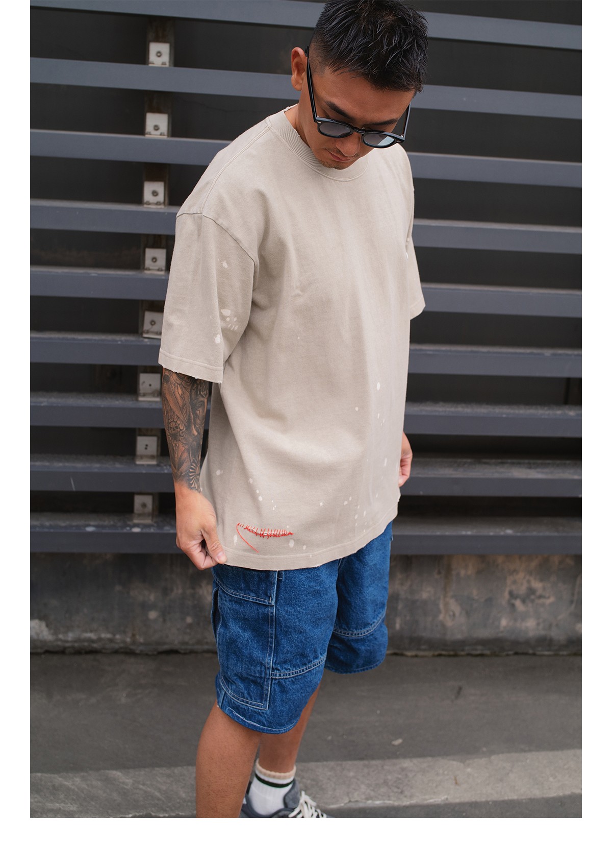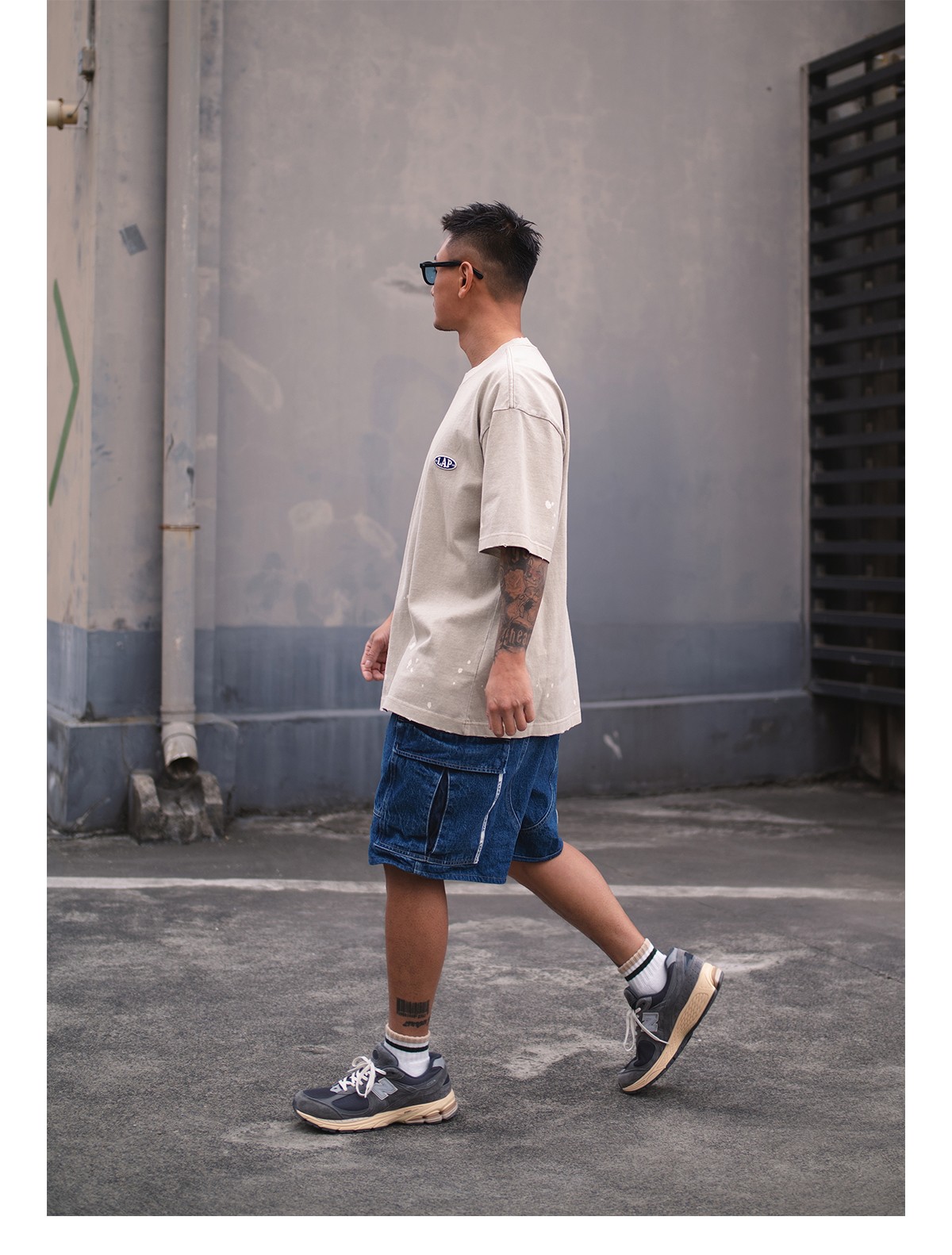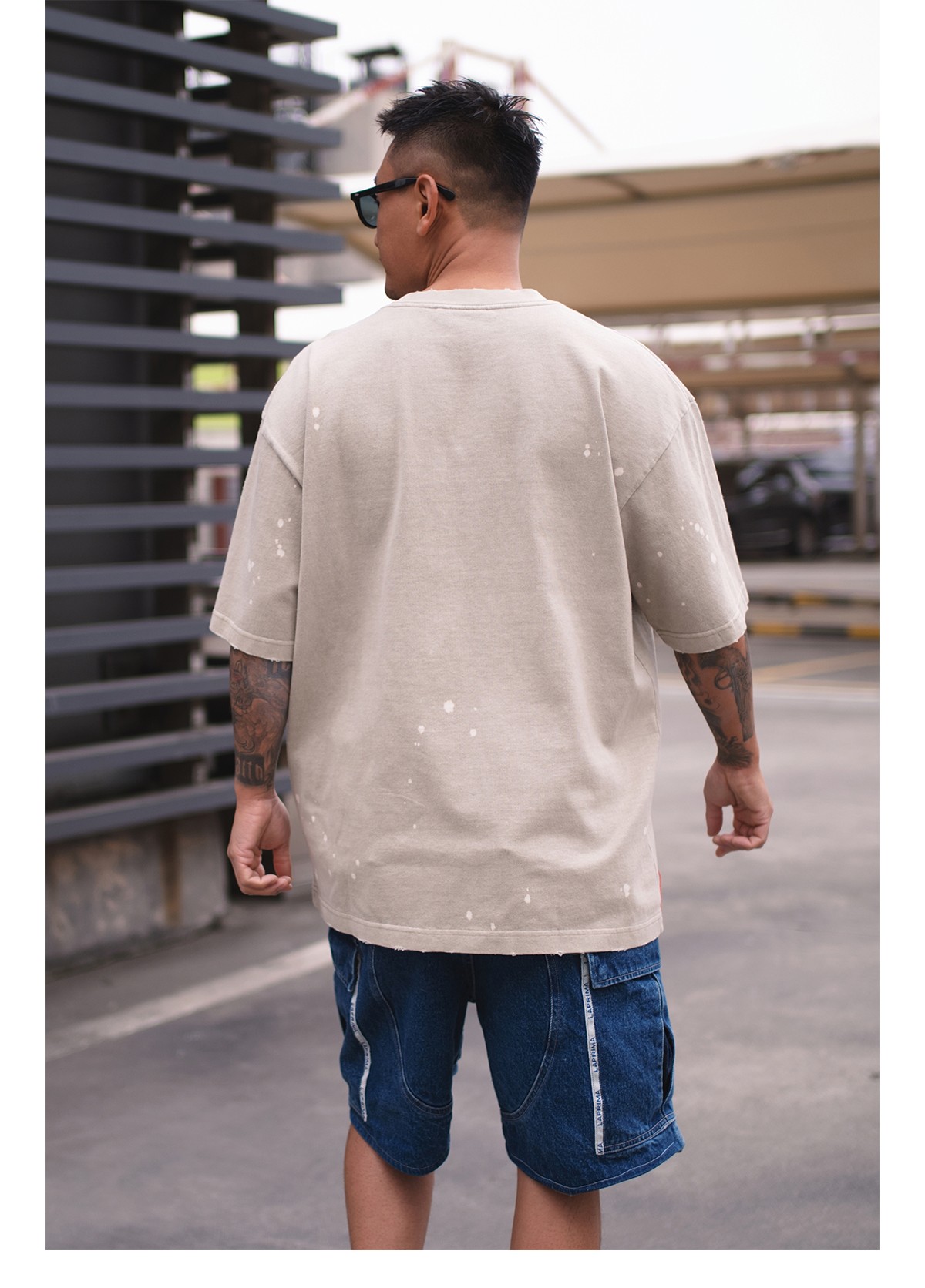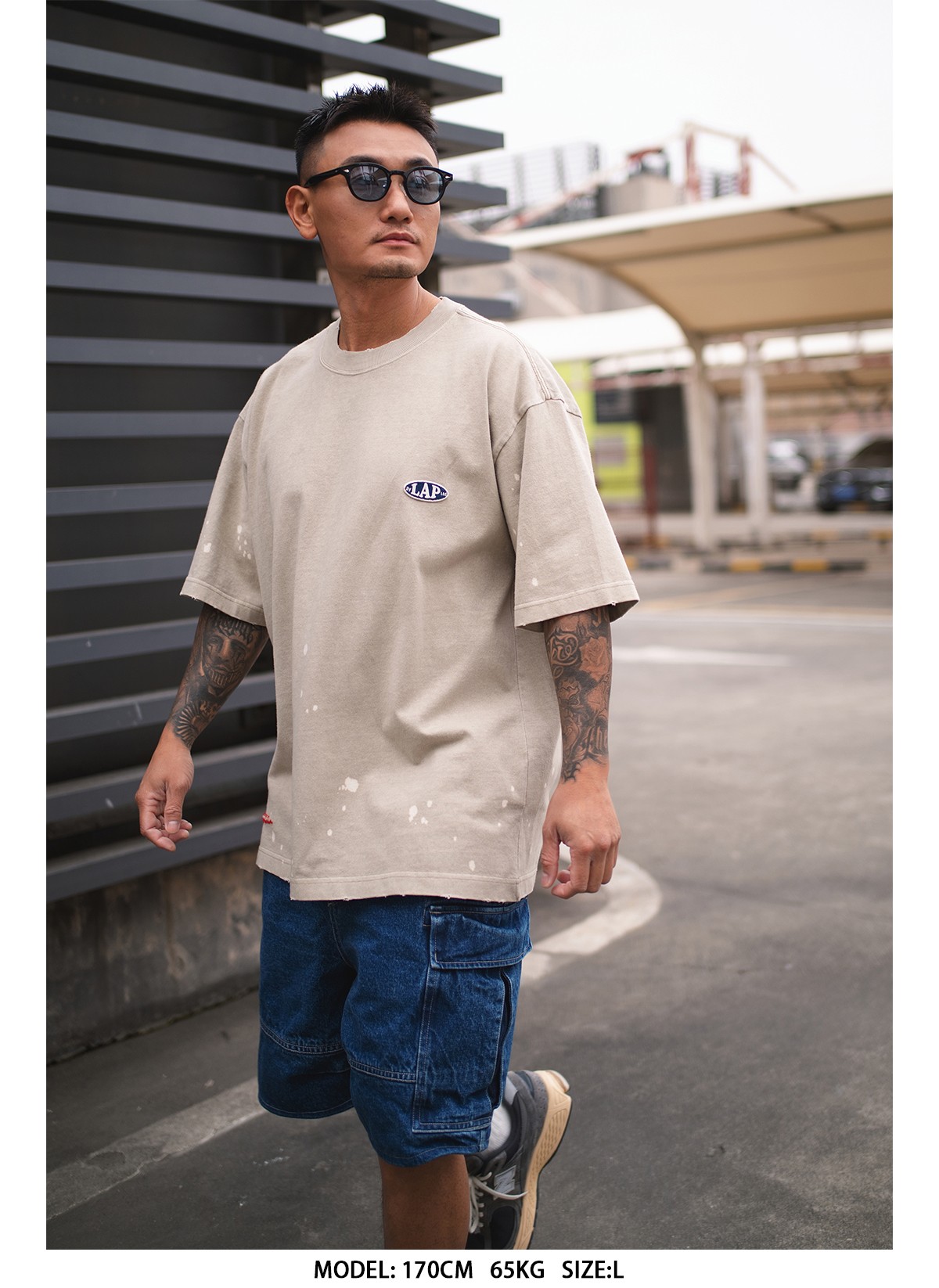 「LAPIVIMA」BATIK INK SPLASH DISTRESSED TEE 水洗染色磨破手縫線潑墨刺繡胸章圓領短TEE