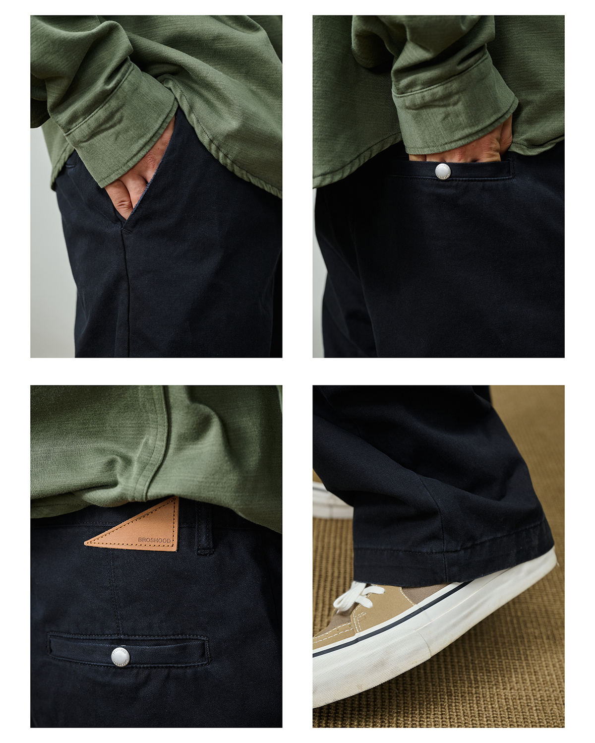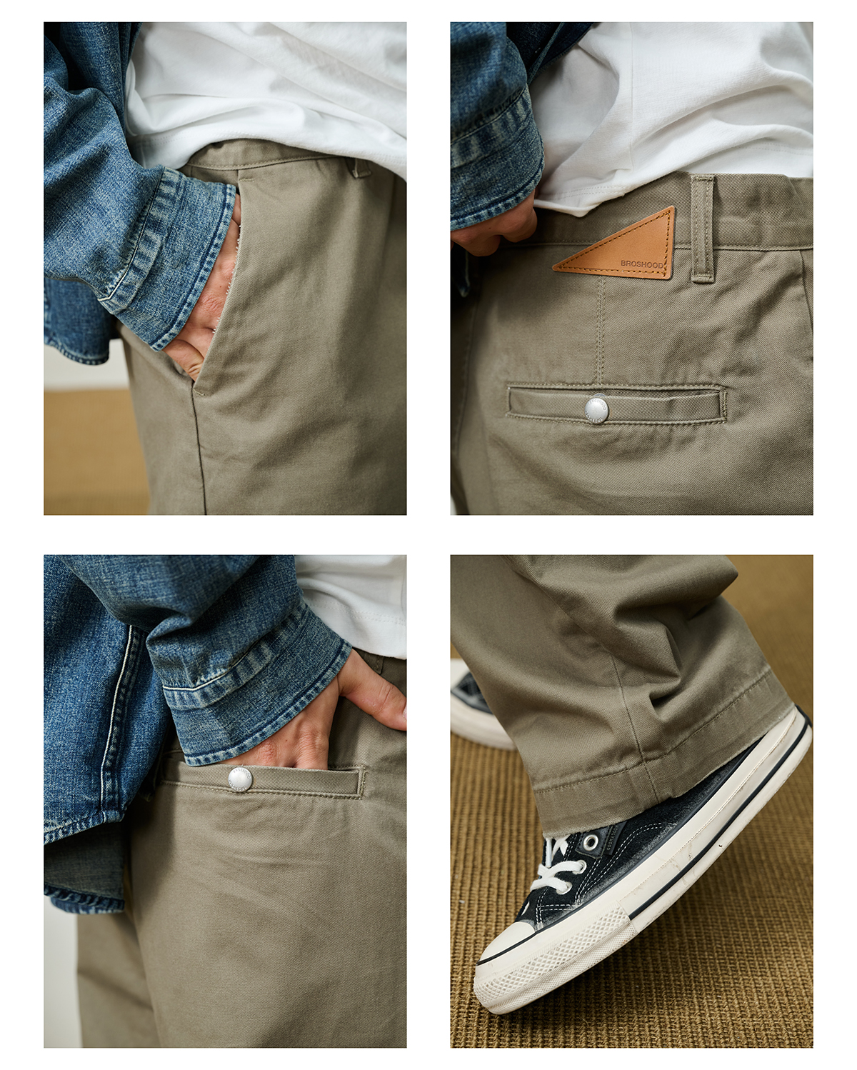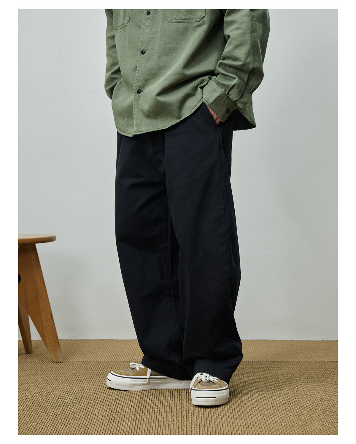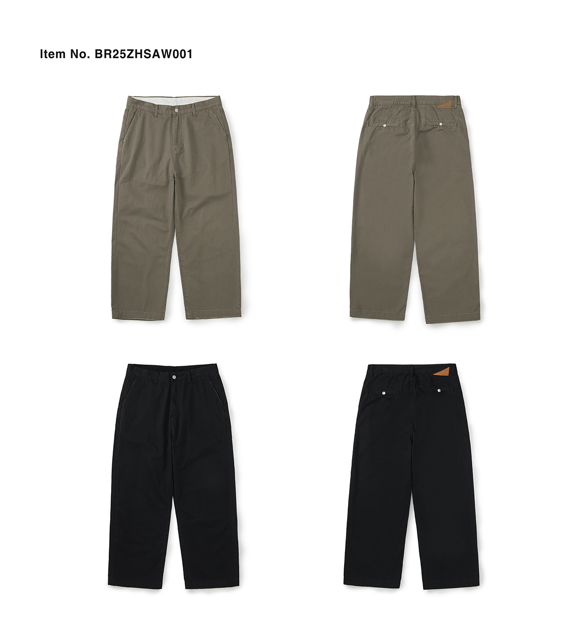 「Broshood」25AW01 日系寬鬆斜紋輕水洗磨爛基礎純色百搭直筒休閒長褲 黑/卡其