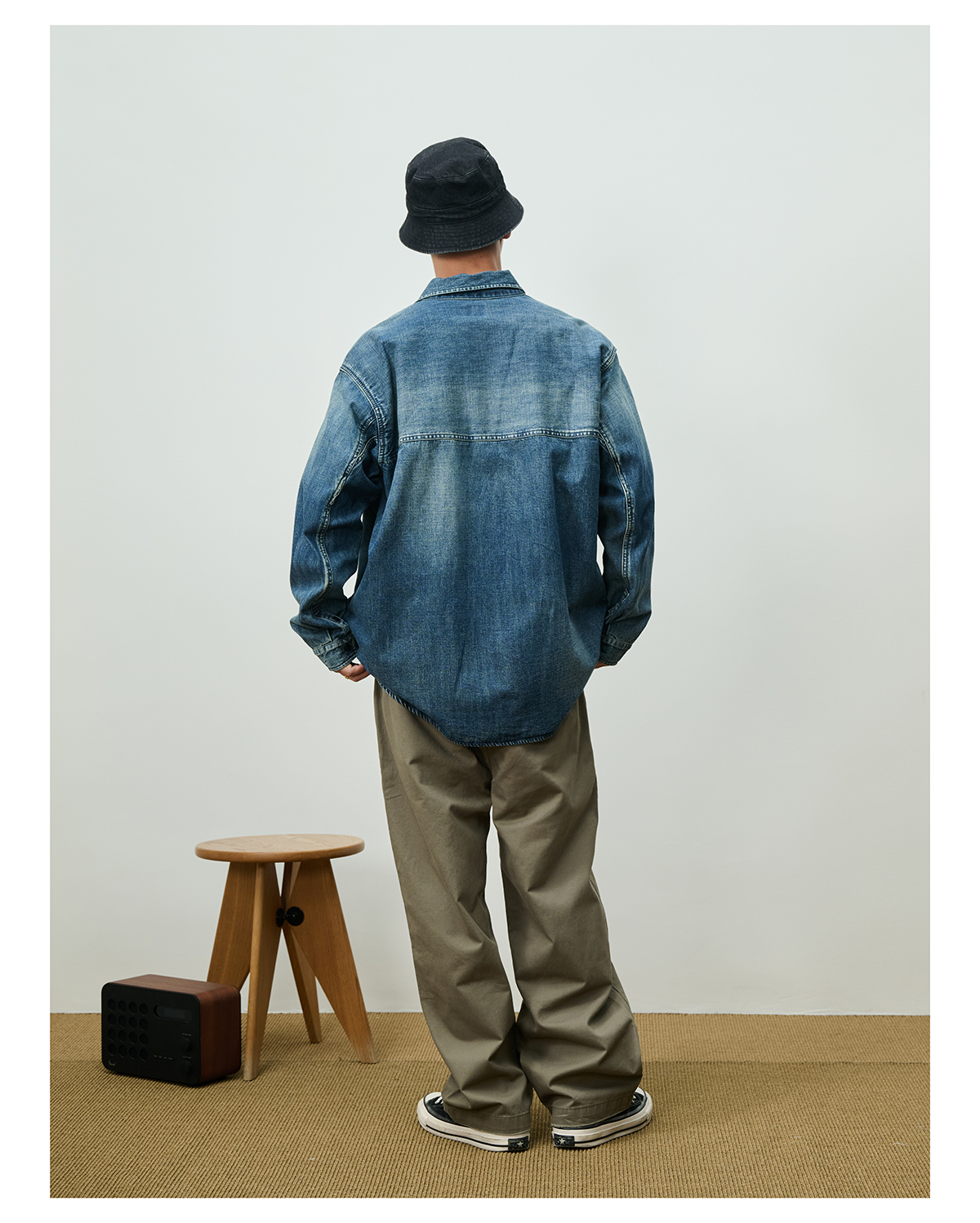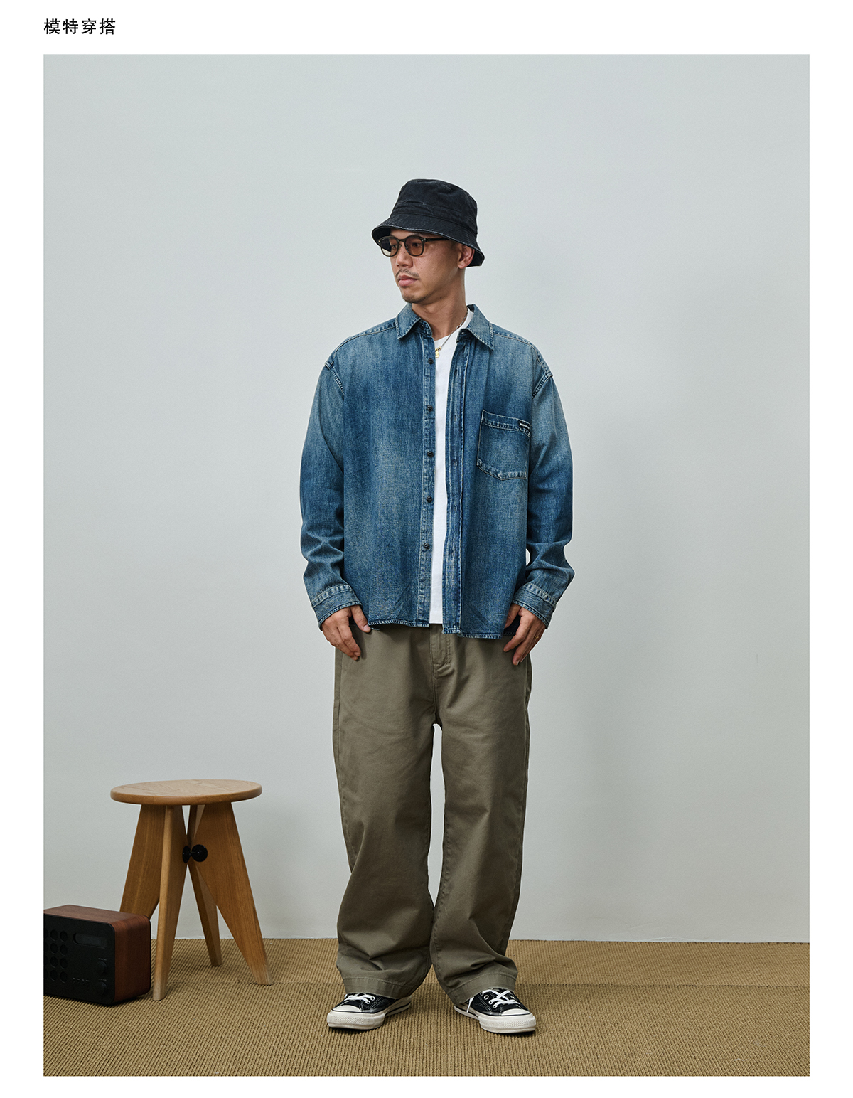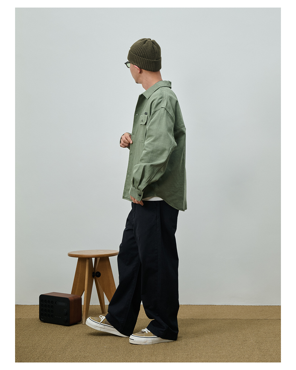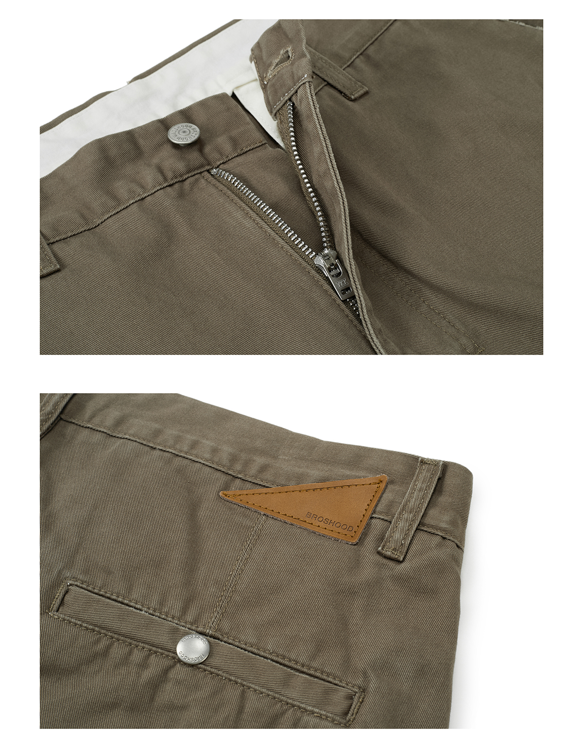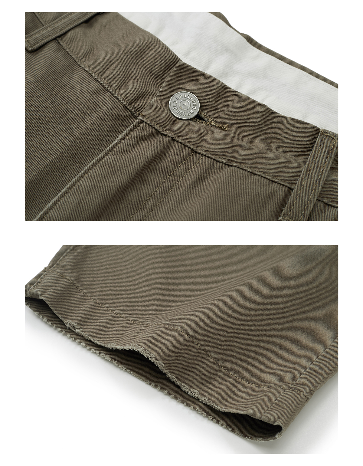 「Broshood」25AW01 日系寬鬆斜紋輕水洗磨爛基礎純色百搭直筒休閒長褲 黑/卡其