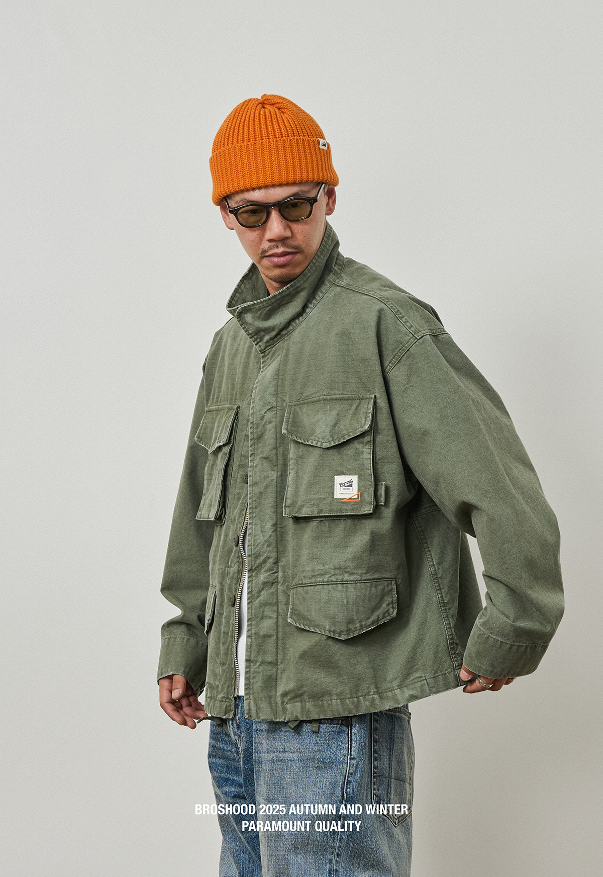 「Broshood」25AW06 日系寬鬆工裝軍用風水洗做舊四袋M65夾克外套