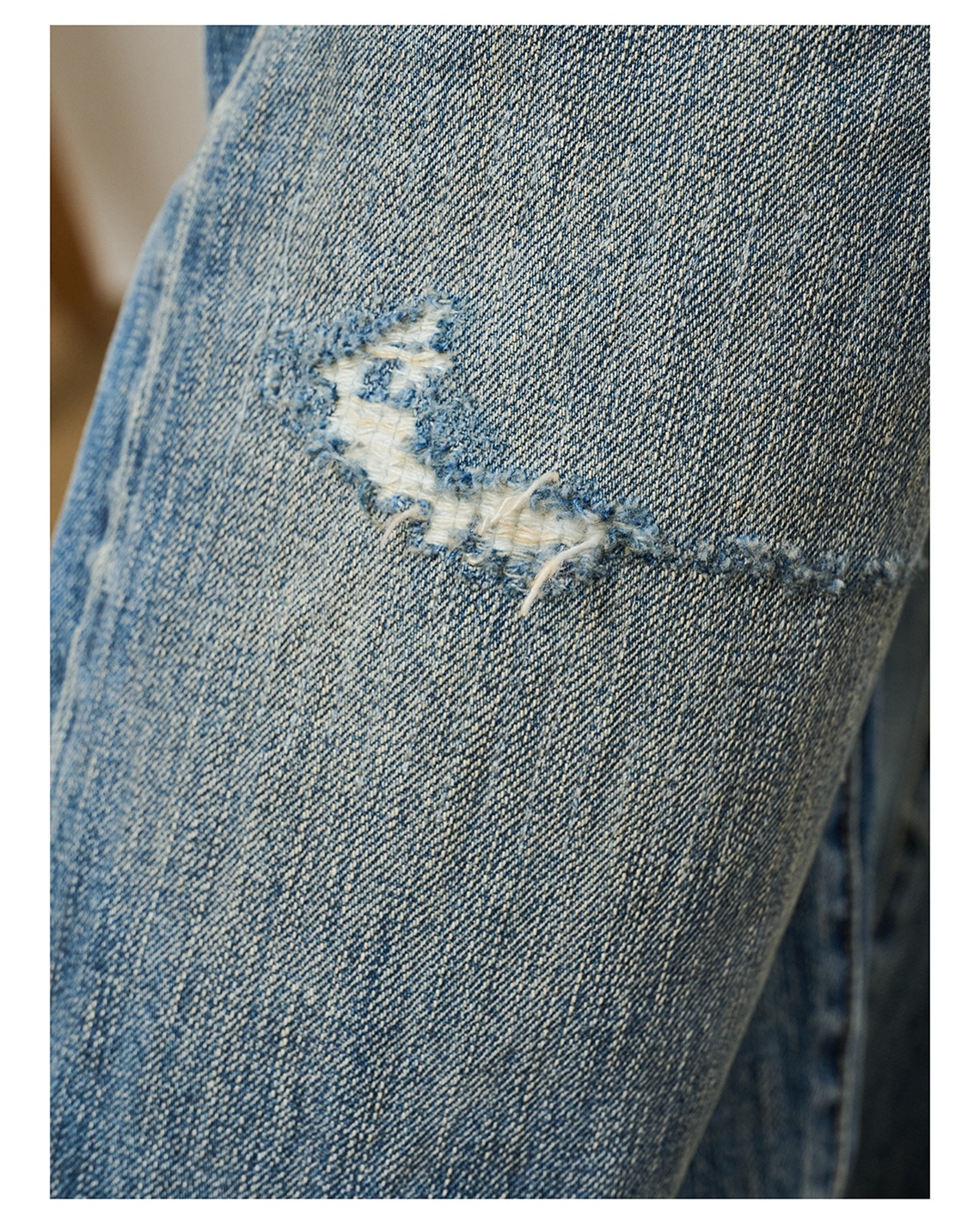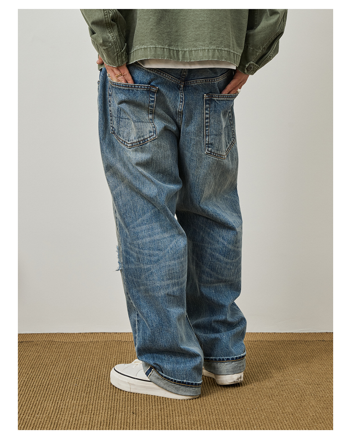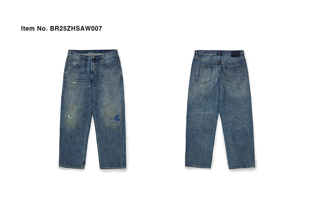 「Broshood」25AW07-日系寬鬆水洗復古破壞補丁赤耳牛仔褲丹寧微錐長褲