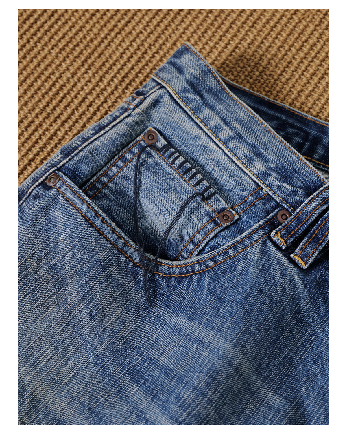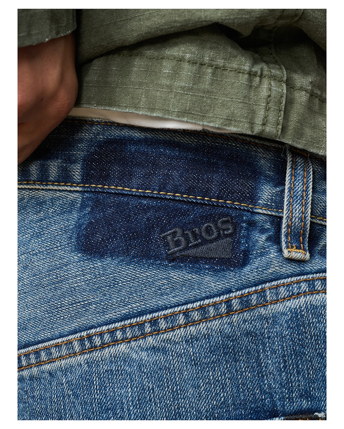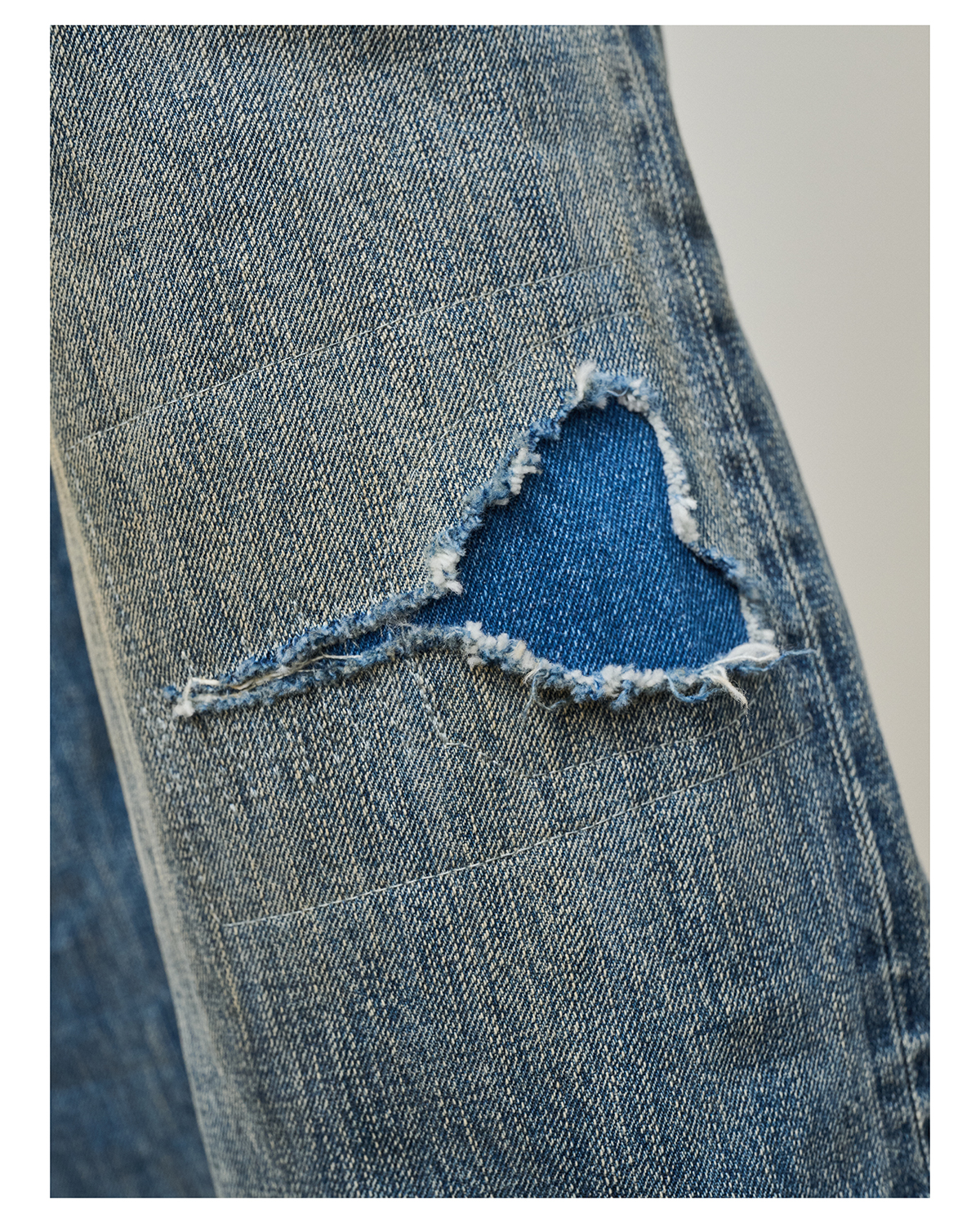 「Broshood」25AW07-日系寬鬆水洗復古破壞補丁赤耳牛仔褲丹寧微錐長褲