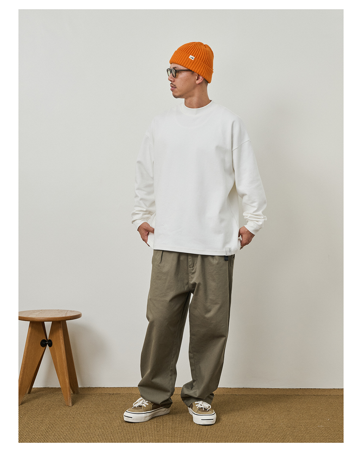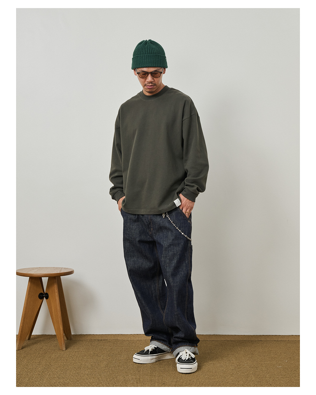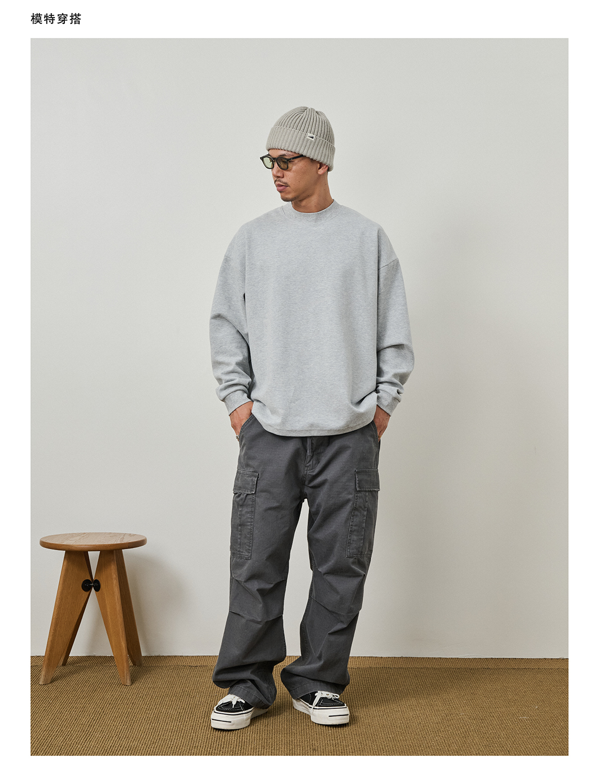 採用310克輕磨毛雙面混紡面料,結構緊實,觸感帶有輕磨毛感舒適自然,寬鬆落肩剪裁,穿感舒適且百搭