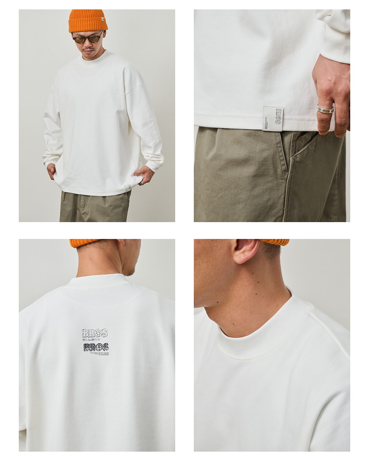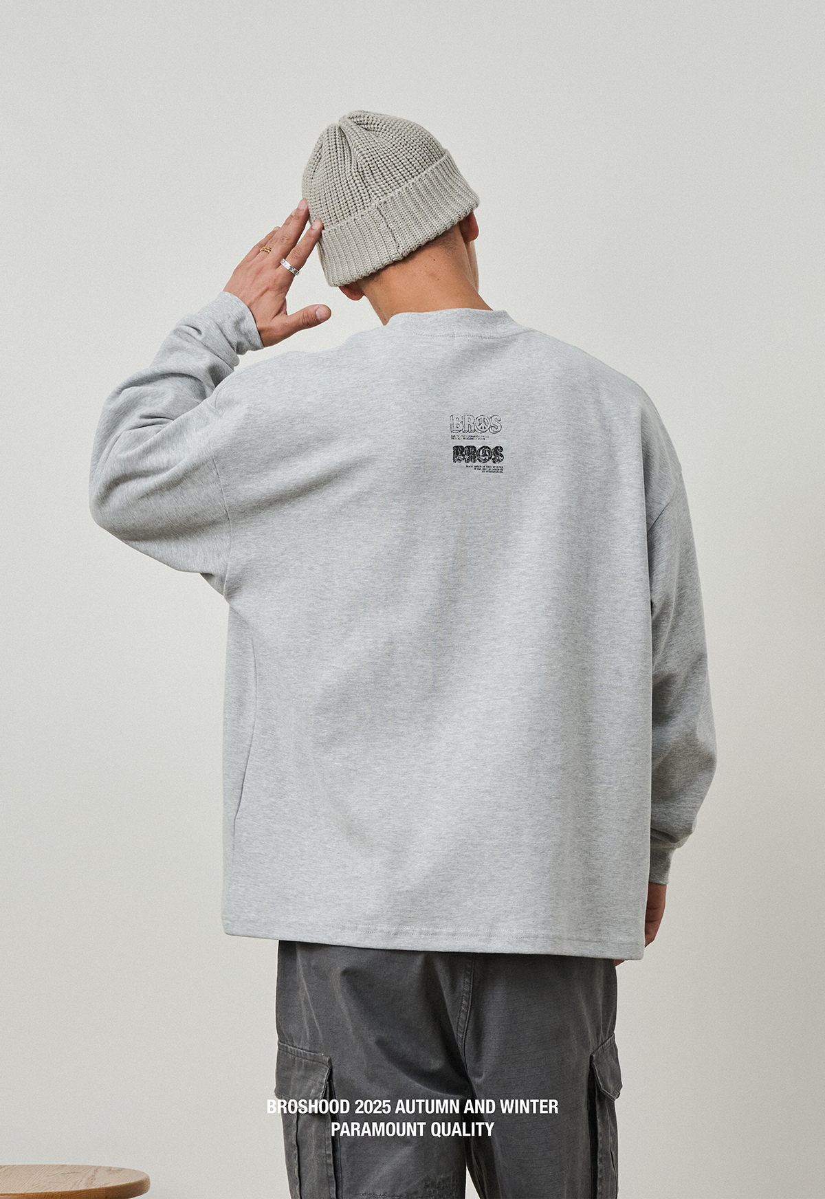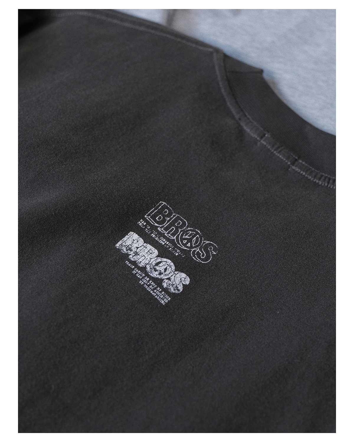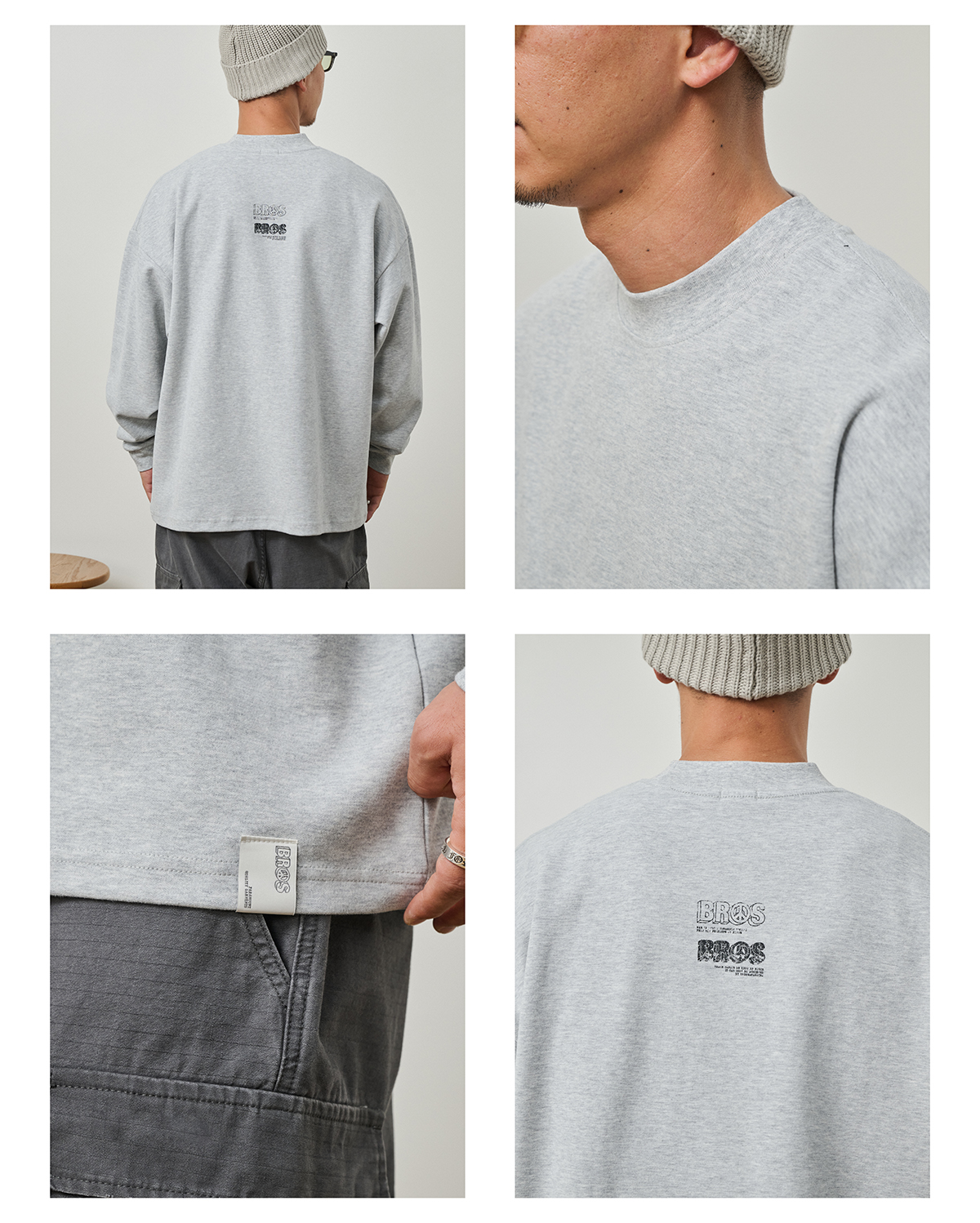 「Broshood」25AW08-日系寬鬆混紡輕磨毛基礎反戰印花長袖Tee 白/花灰/深灰