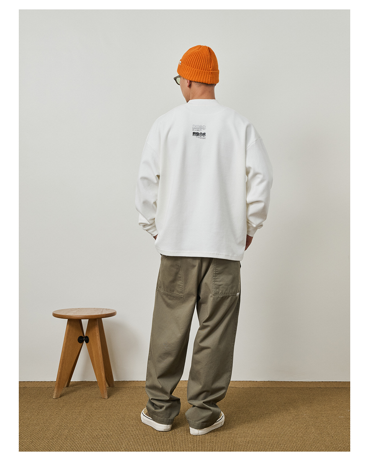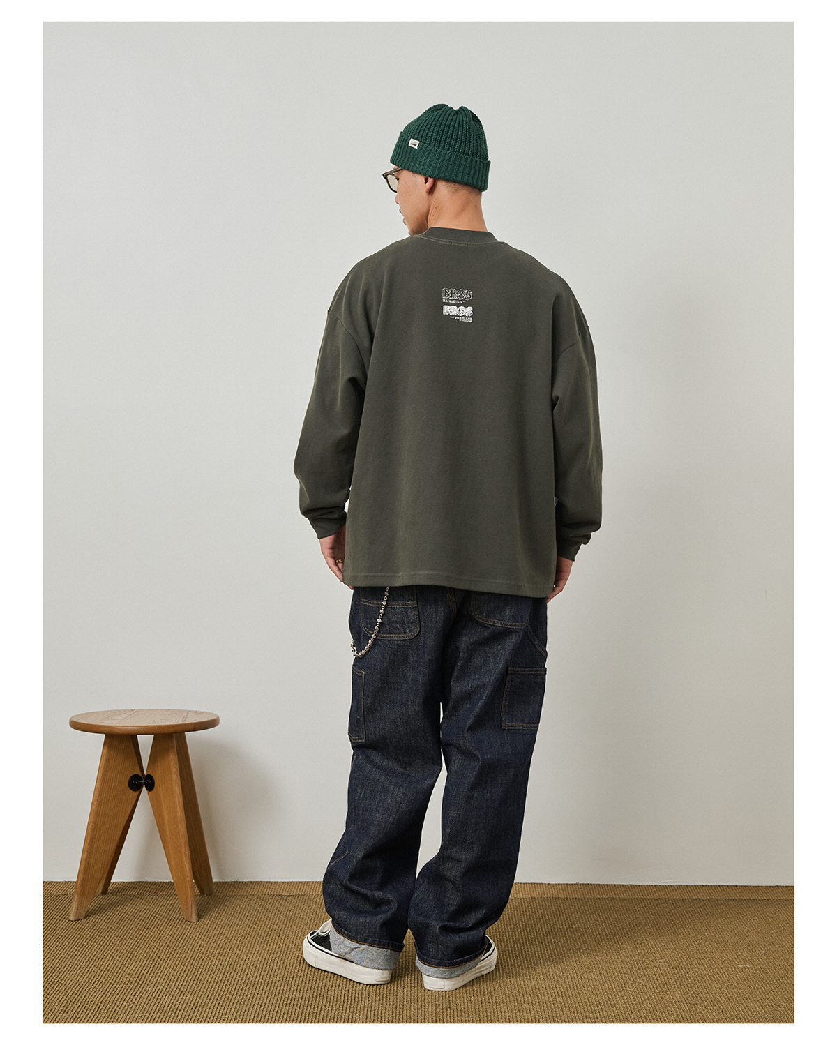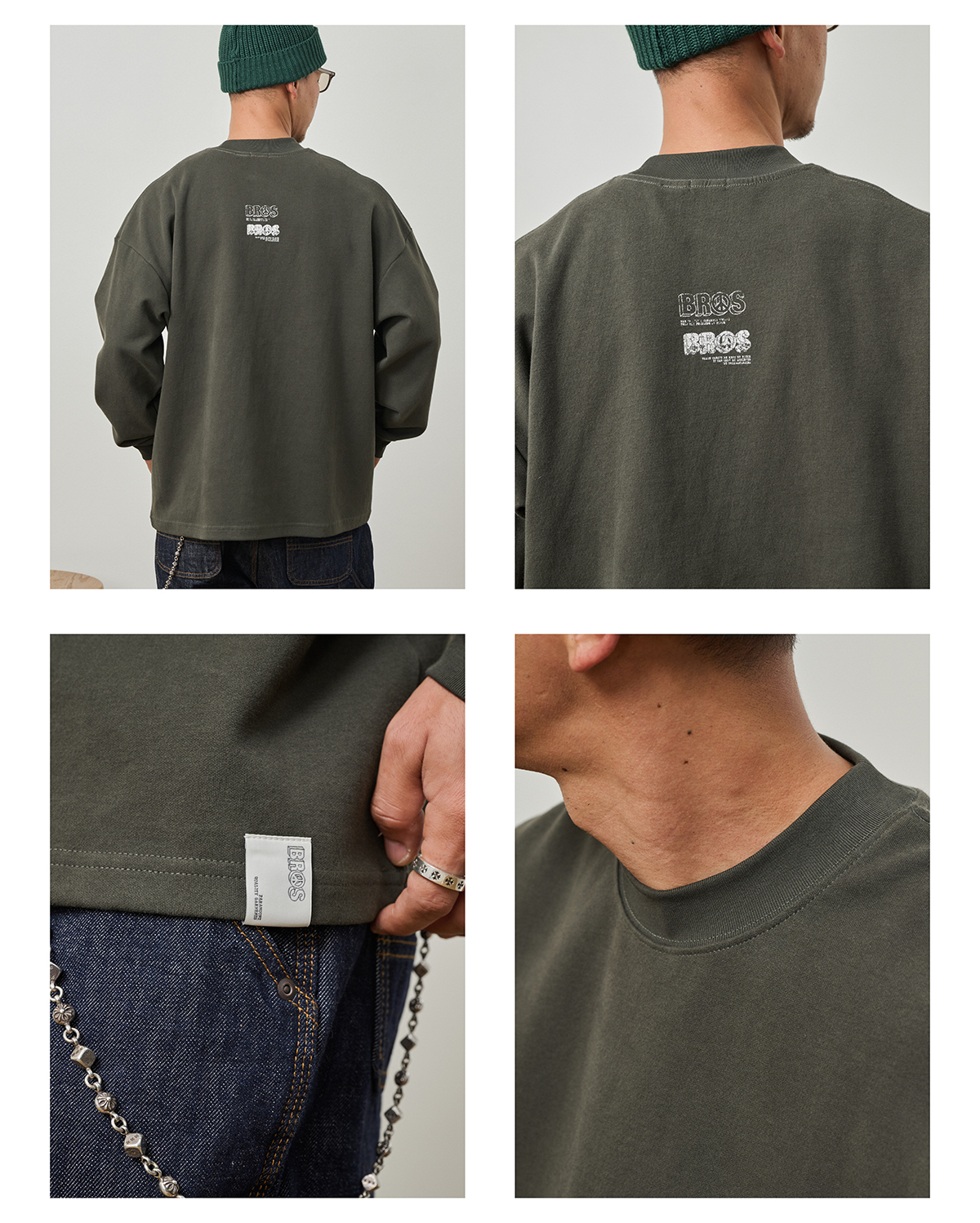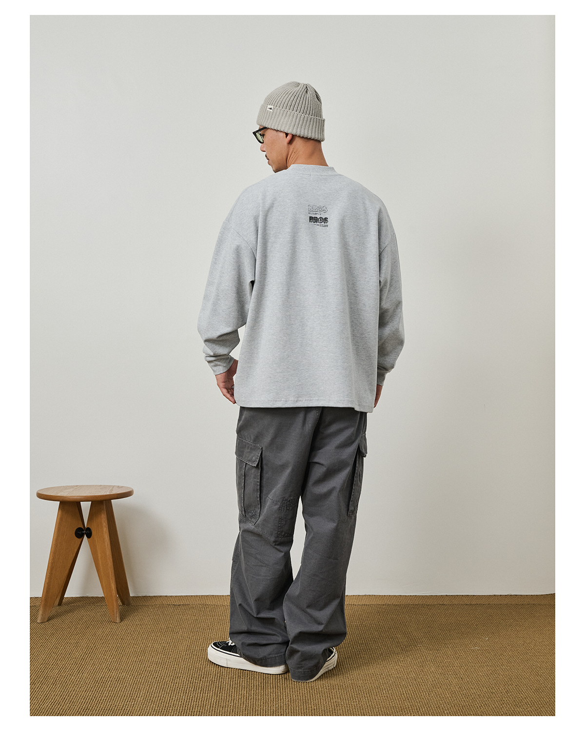 「Broshood」25AW08-日系寬鬆混紡輕磨毛基礎反戰印花長袖Tee 白/花灰/深灰