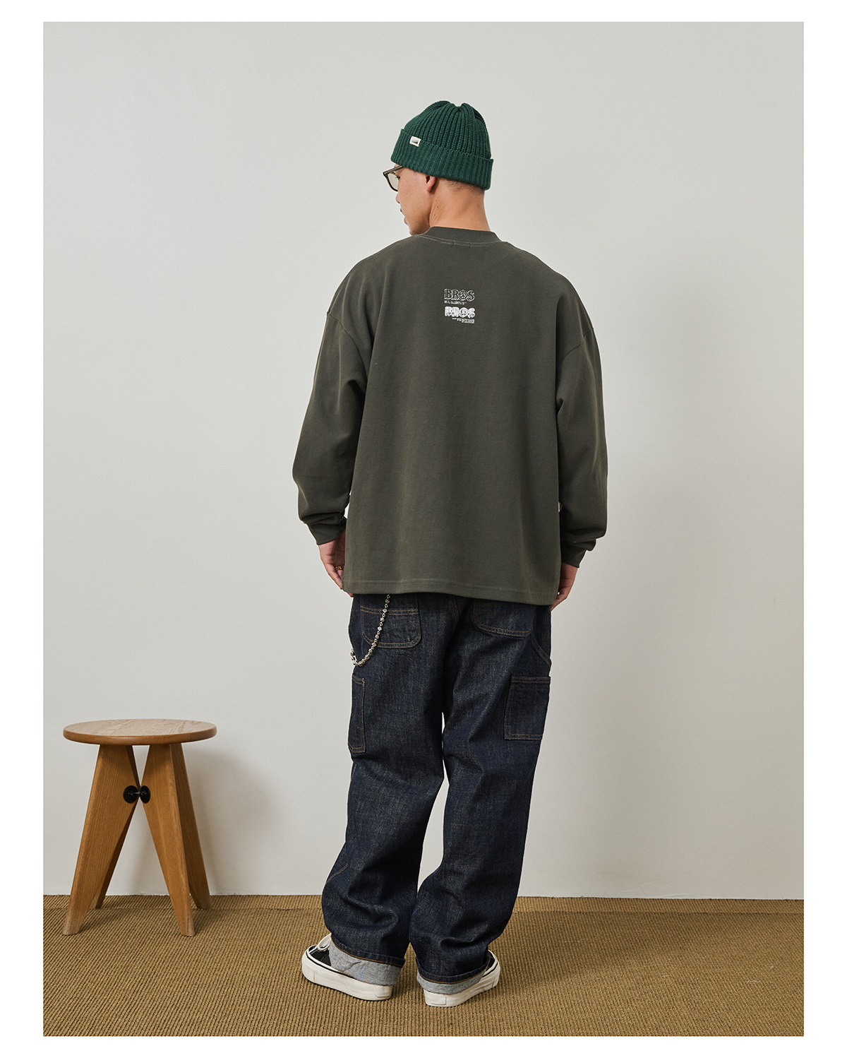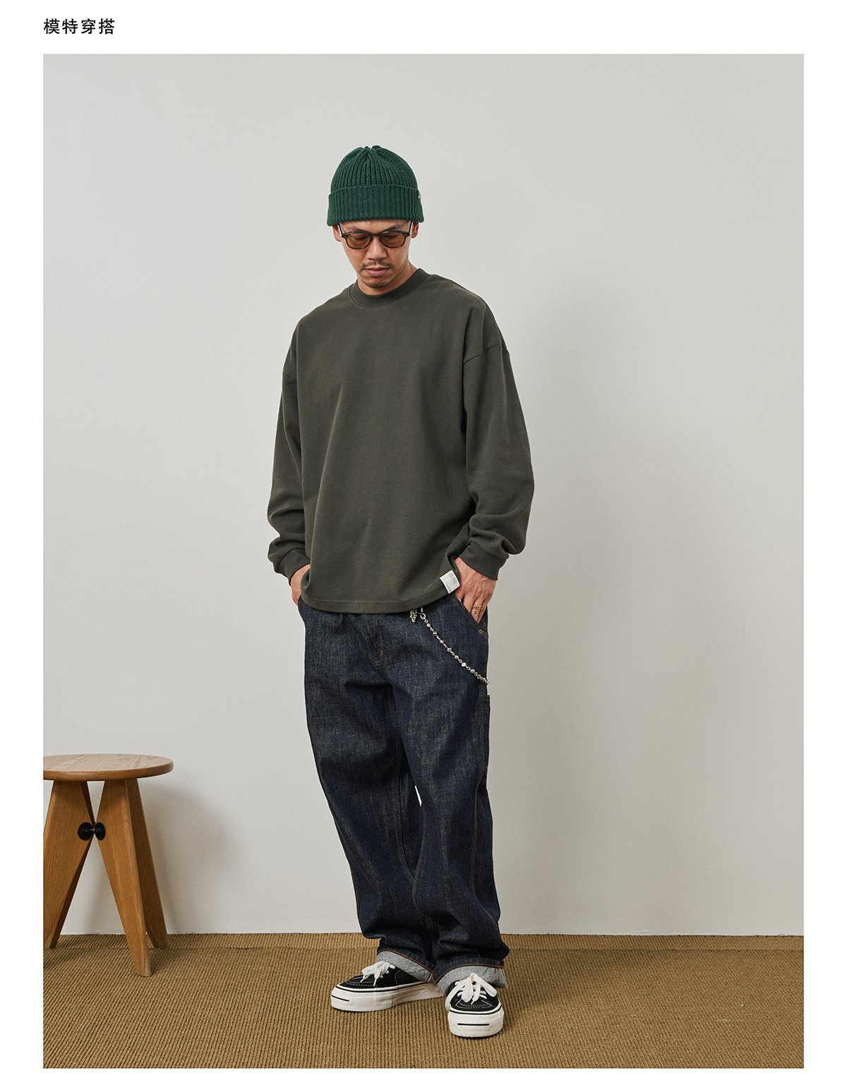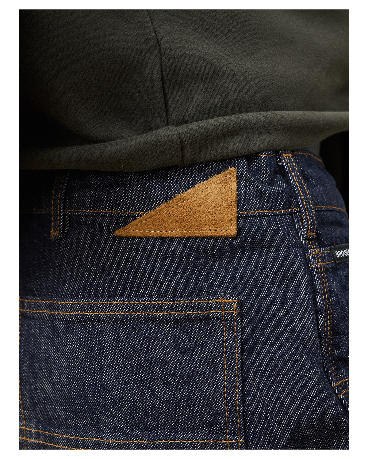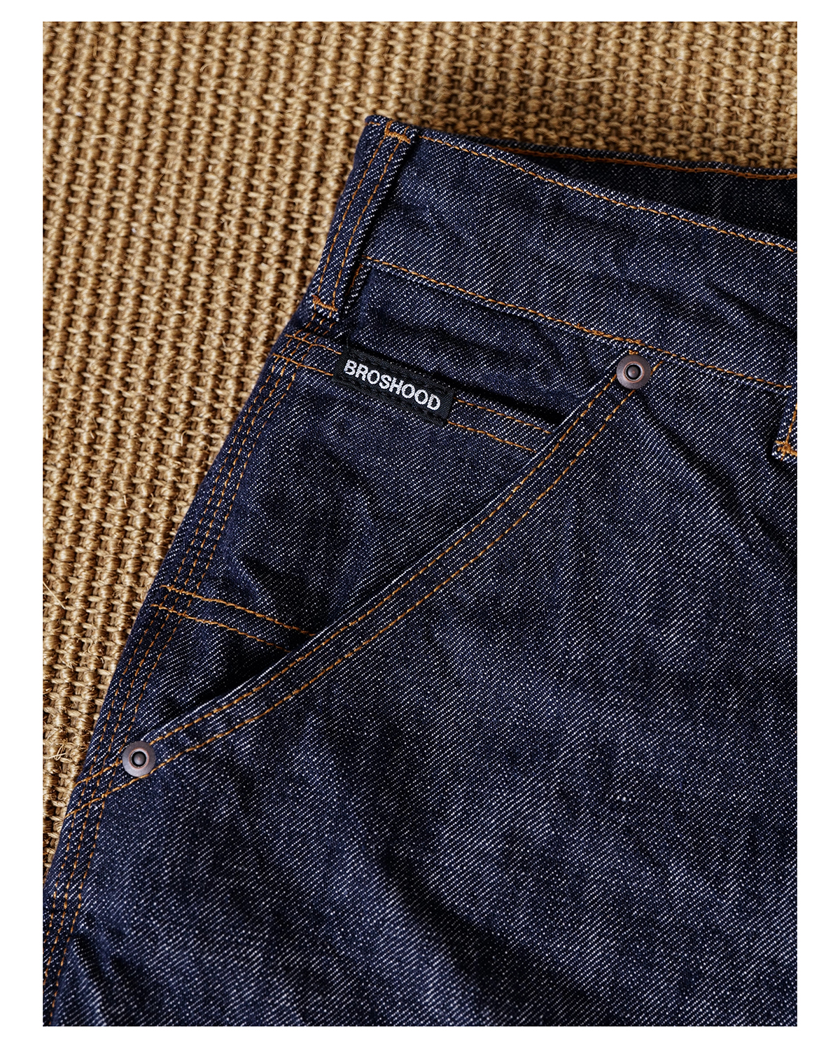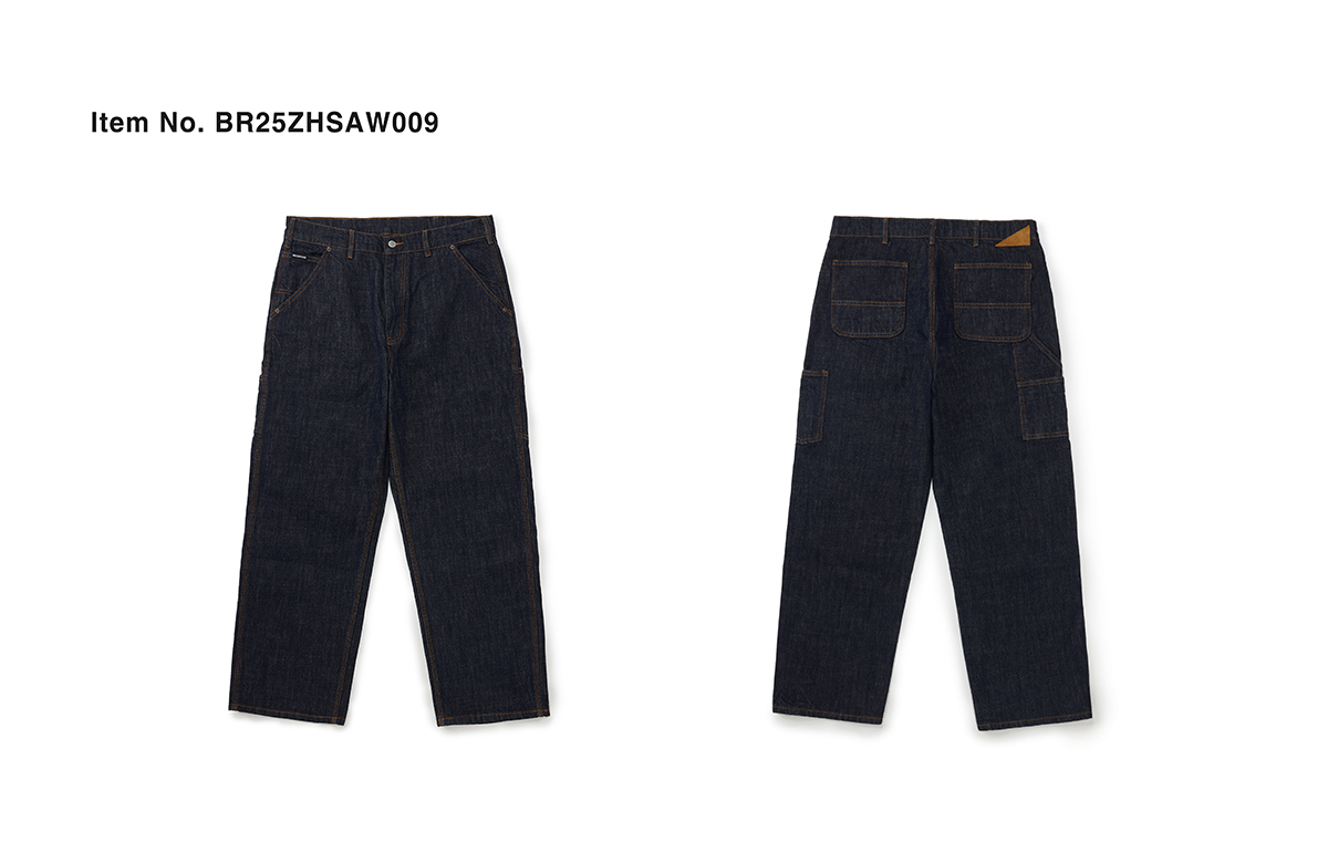 「Broshood」25AW09-日系寬鬆復古原色工裝微錐牛仔長褲