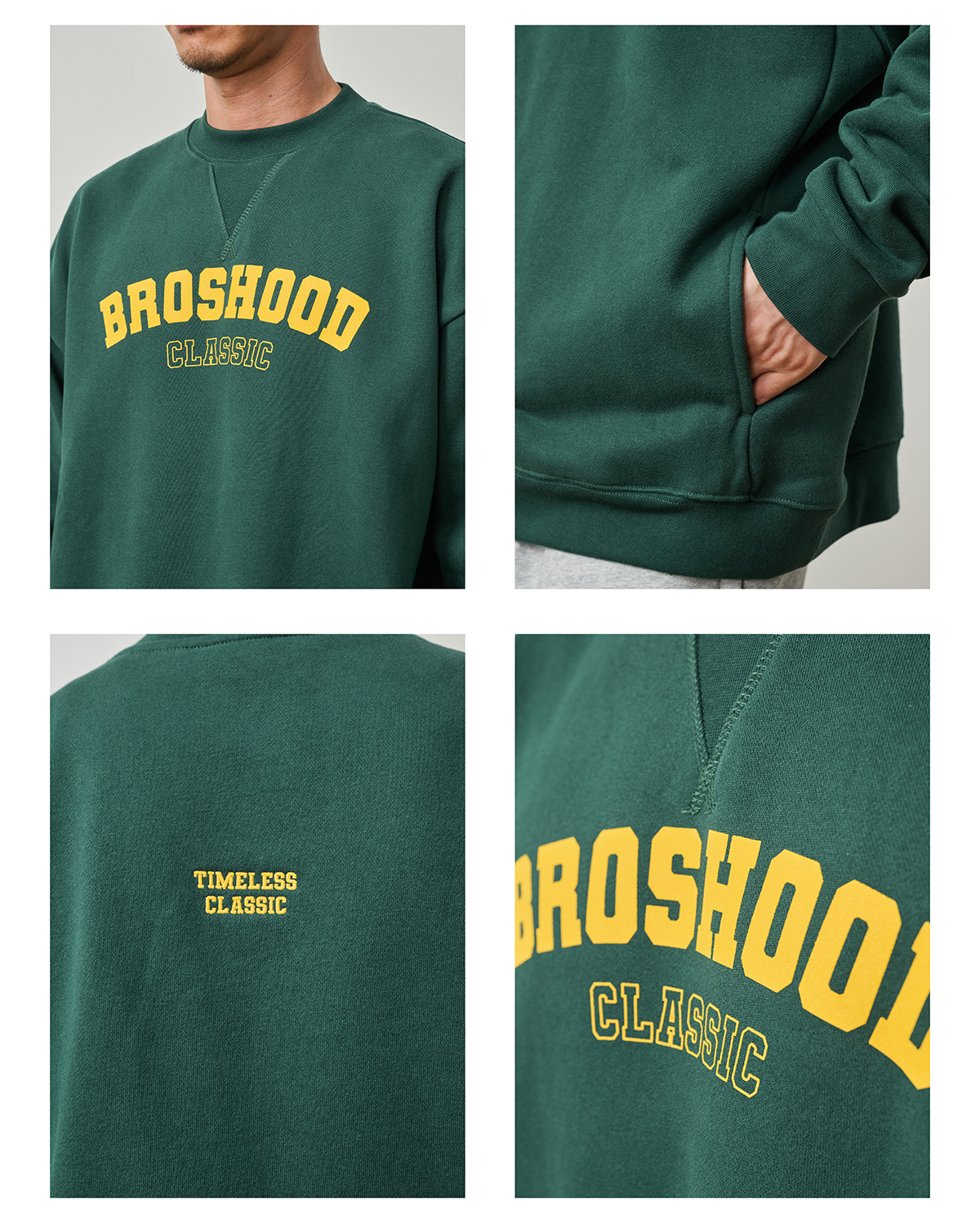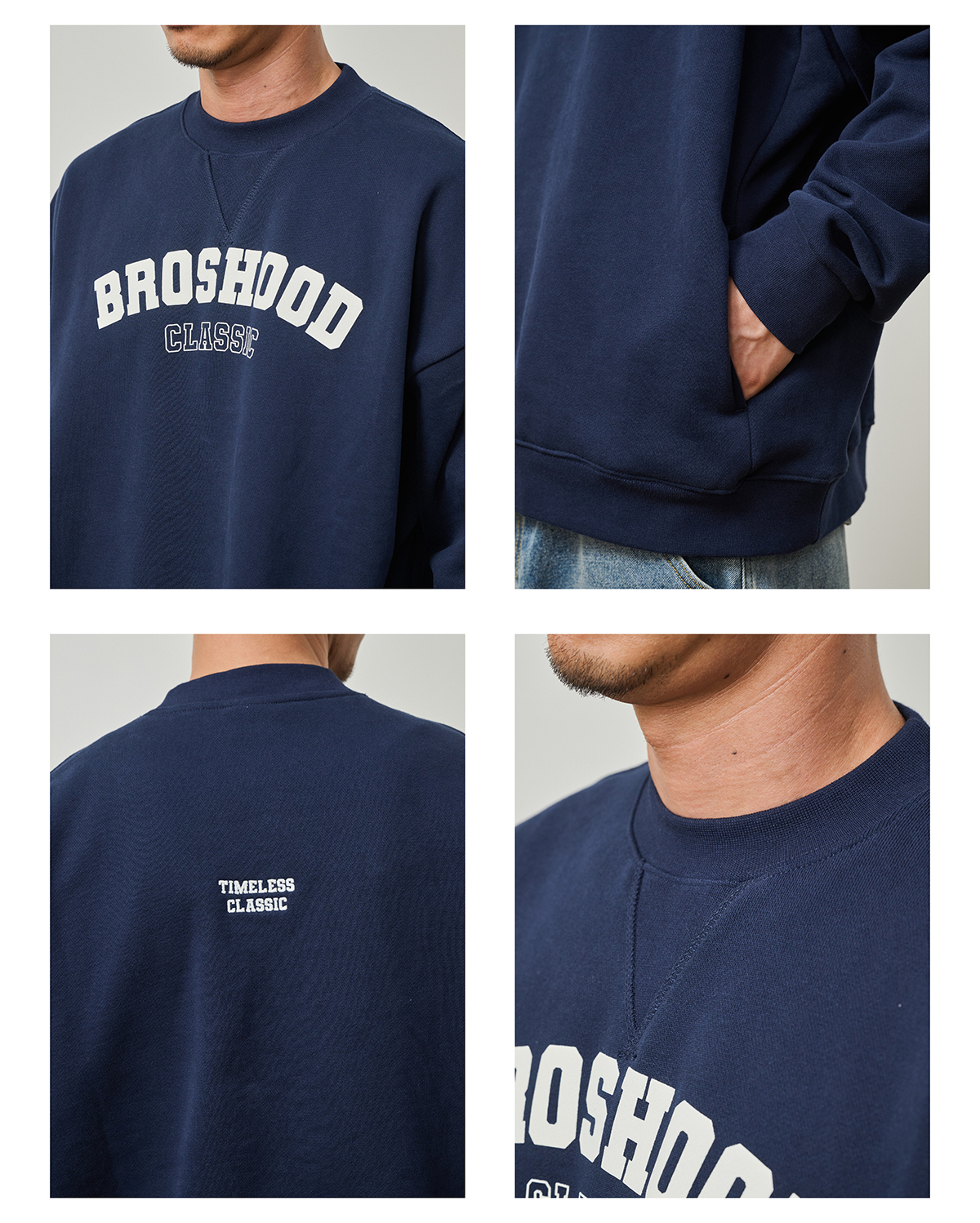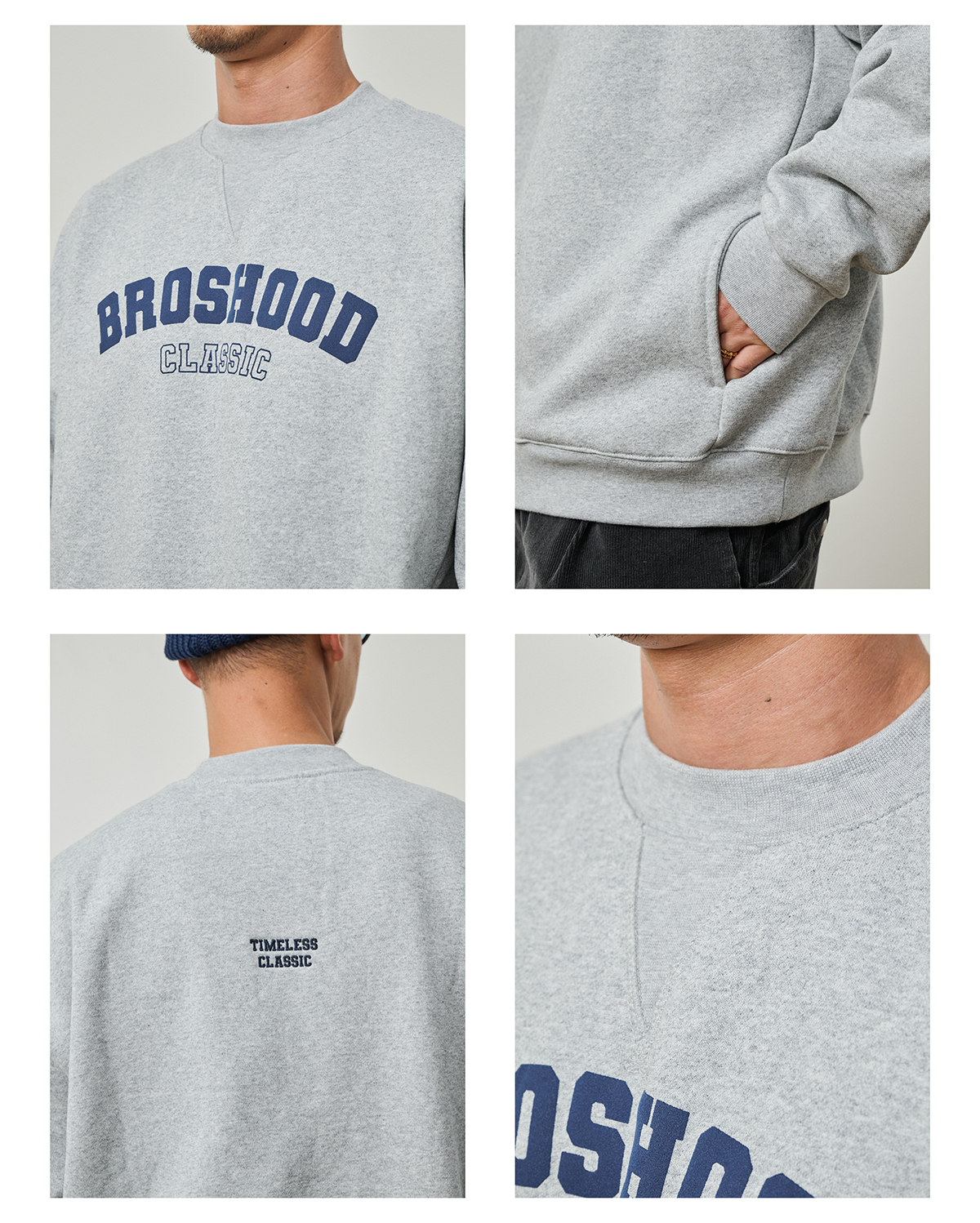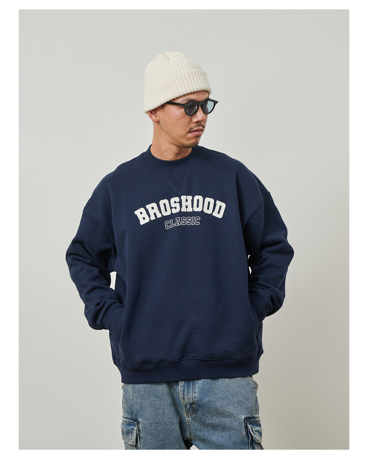 「Broshood」25AW19 日系寬鬆經典字母印花雙插袋圓領衛衣