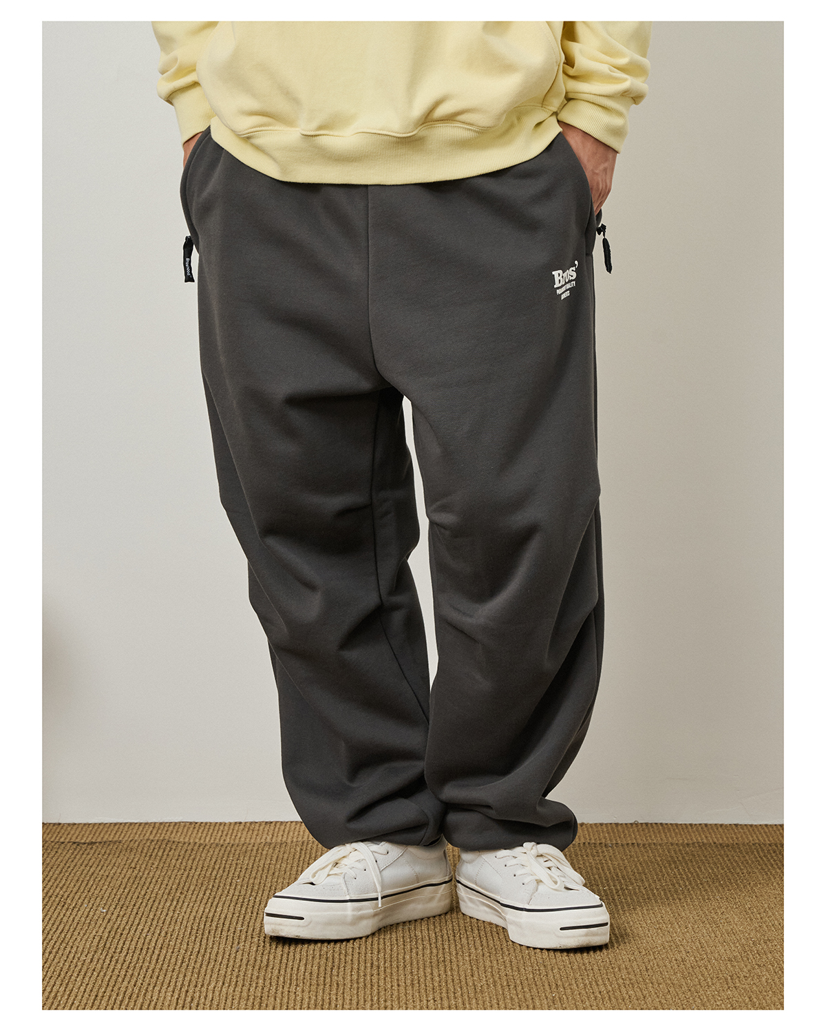 「Broshood」25AW22 日系寬鬆絨面印花拉鍊口袋衛褲 深灰/淺灰/黑色
