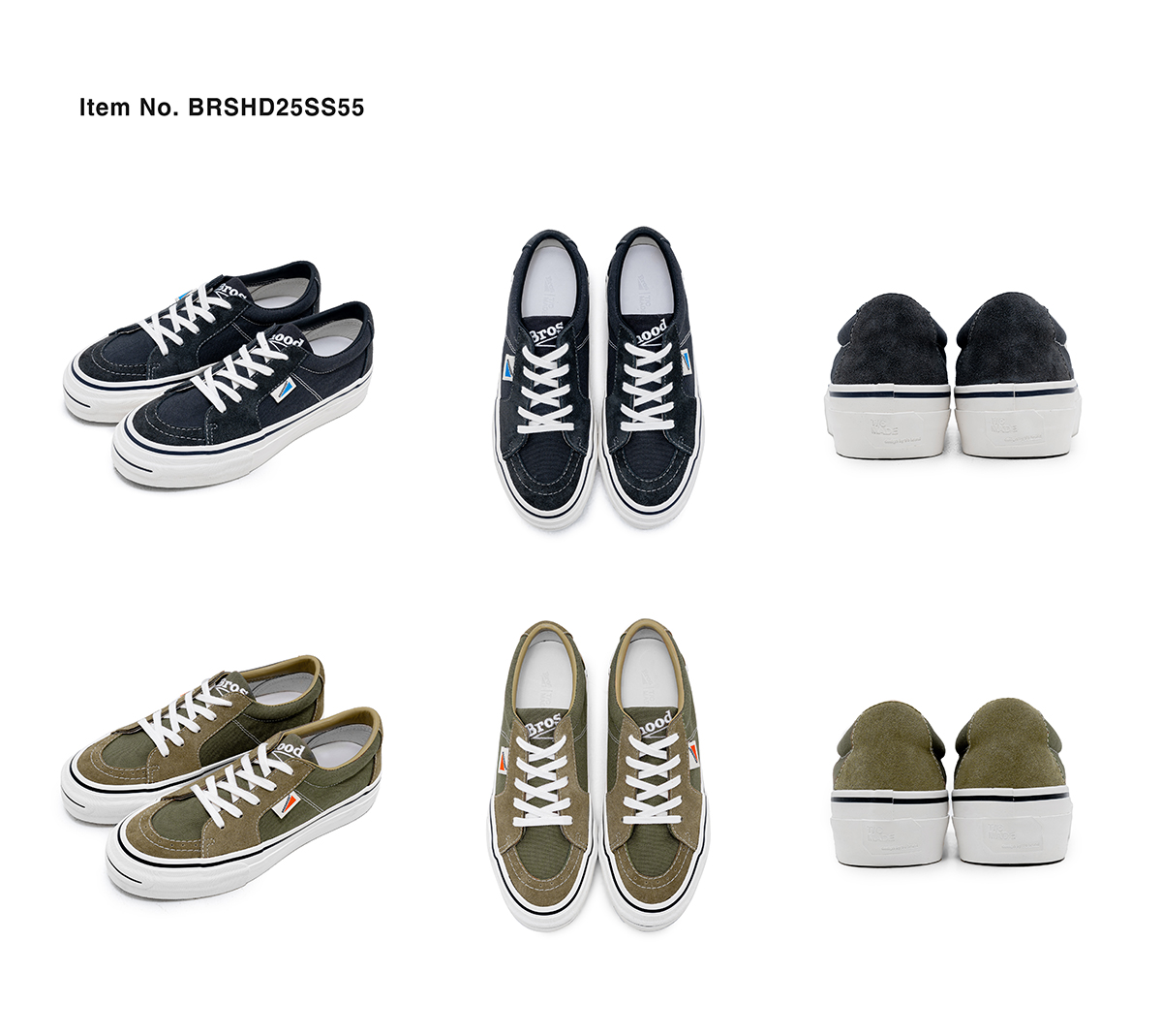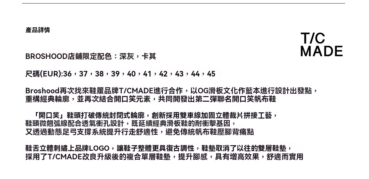 「Broshood x TCMADE」 25SS聯名日系厚底休閒低筒開口笑帆布鞋 卡其色 黑灰色