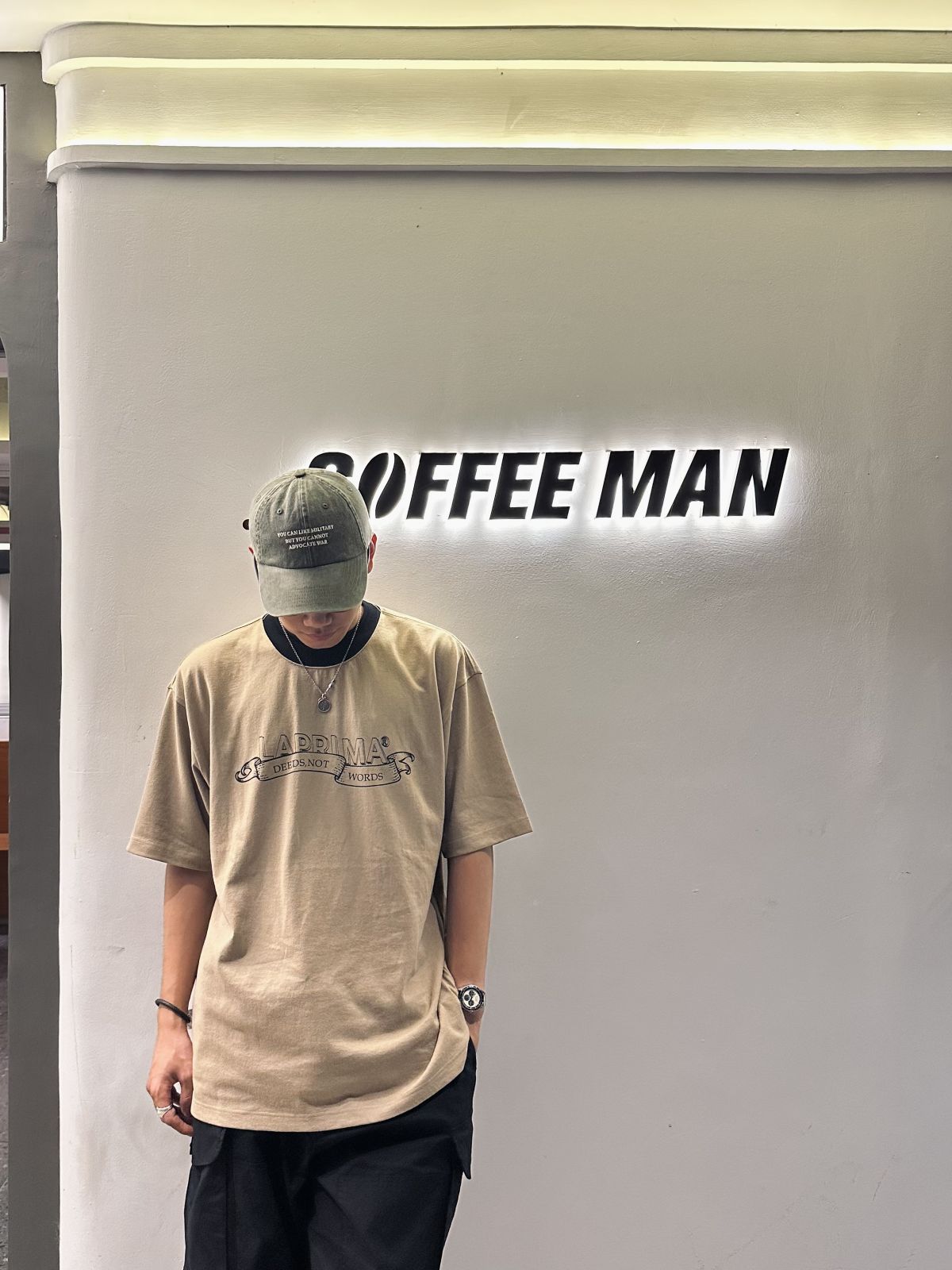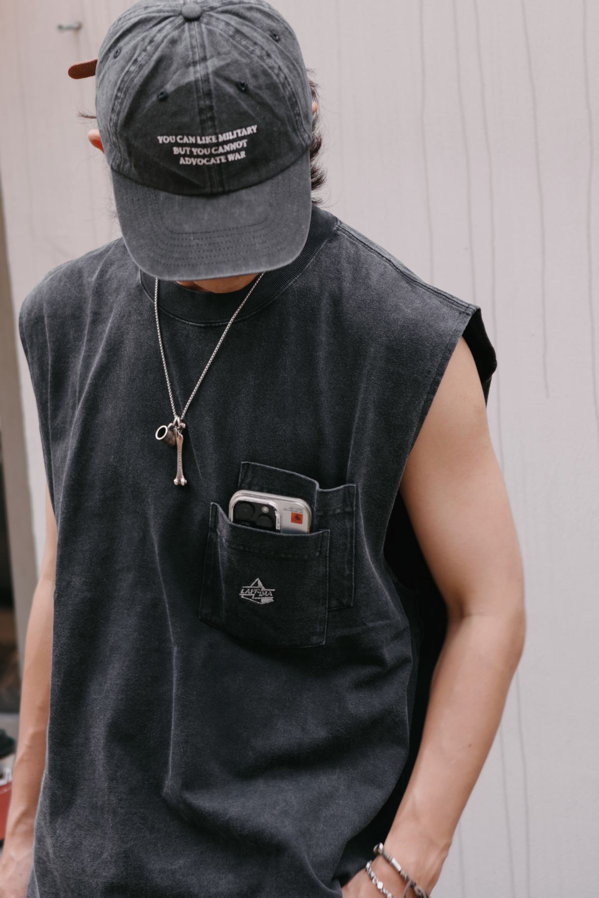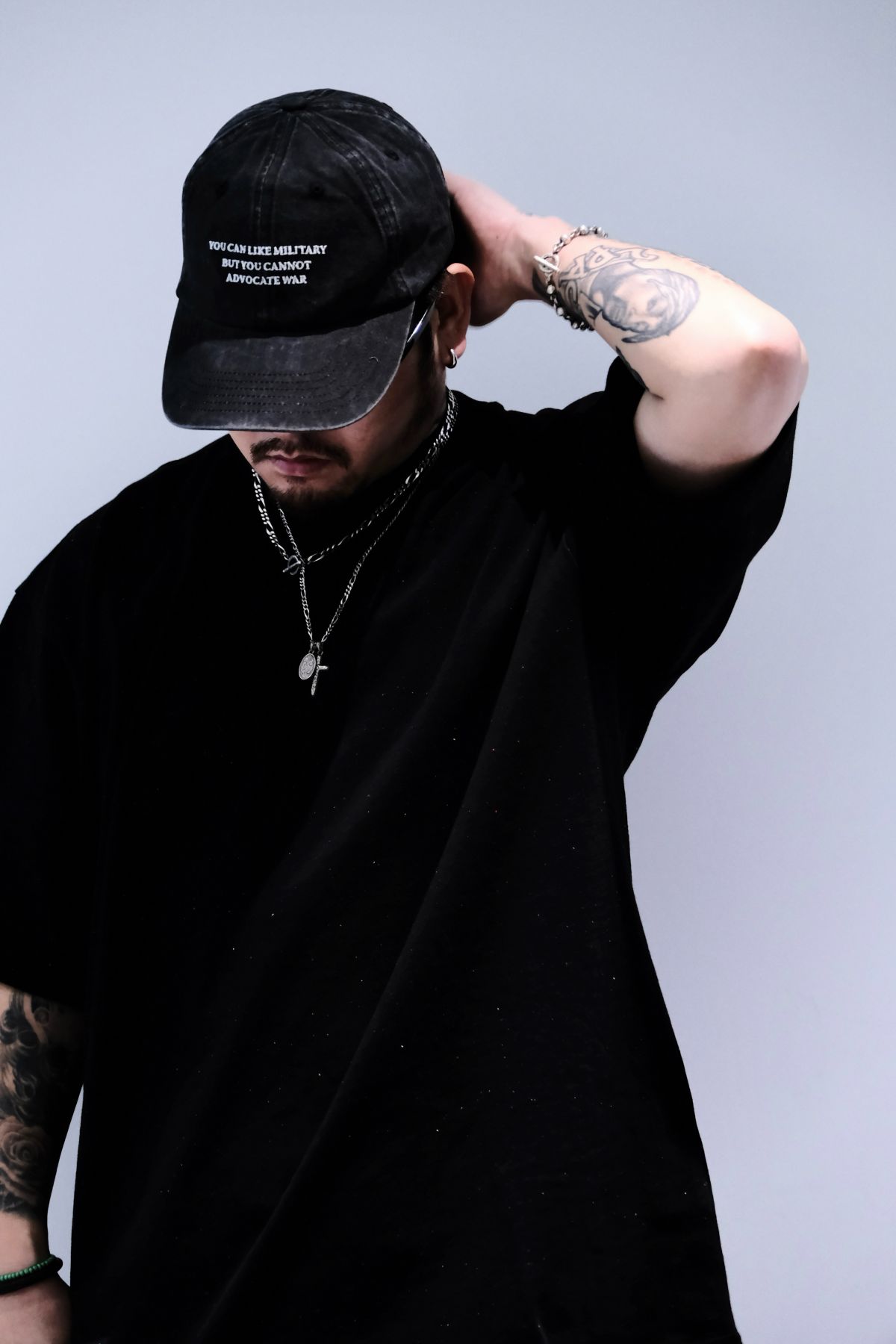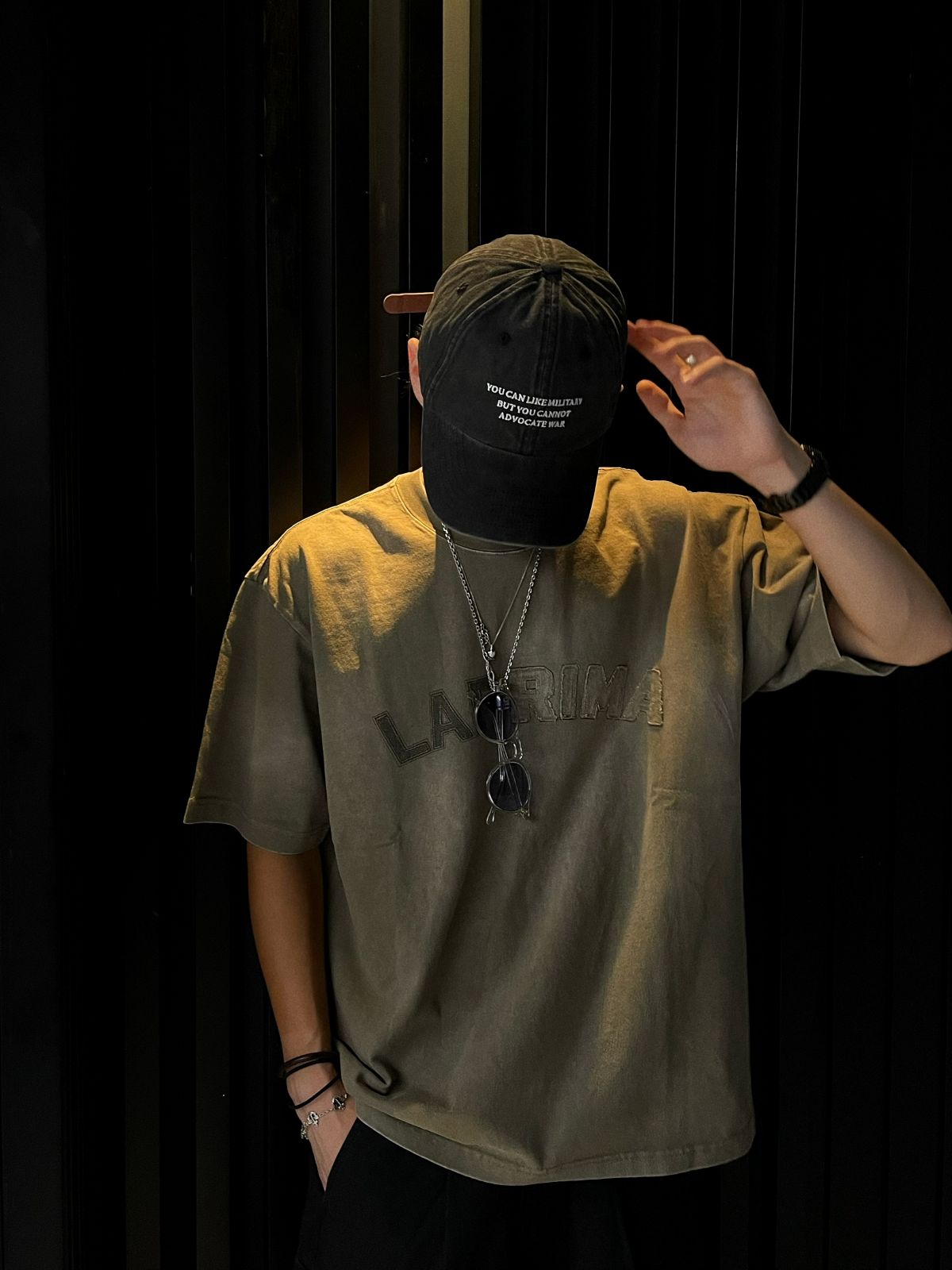 本季度反戰標語「你可以喜歡軍事,但不能鼓吹戰爭」 面料選用280G厚實挺闊的全棉斜紋布,水洗染色工藝使作舊簡約質感強烈。