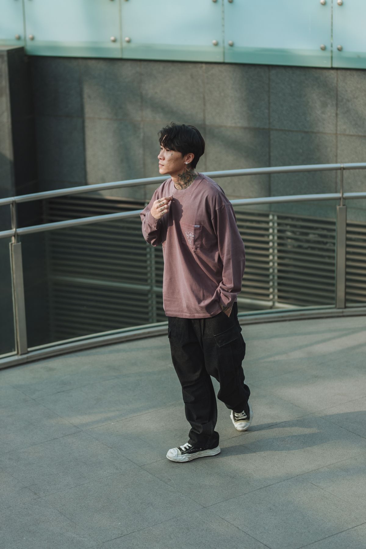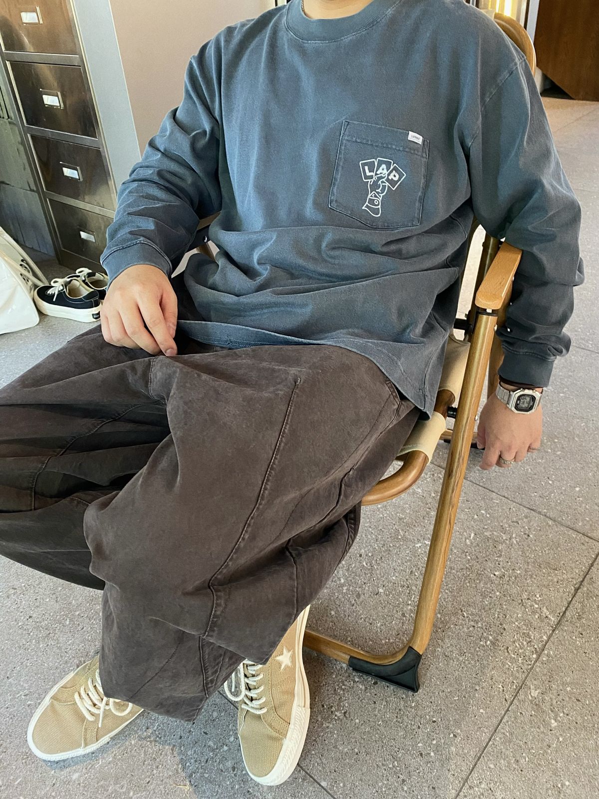 「LAPRIMA」POCKET PRINT LOOSE SLEEVE 口袋印花水洗長袖衛衣