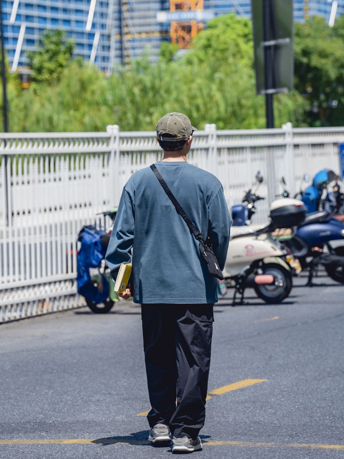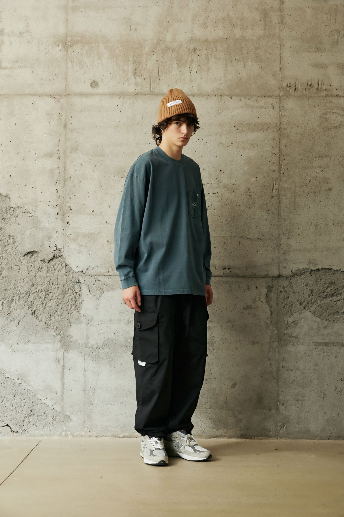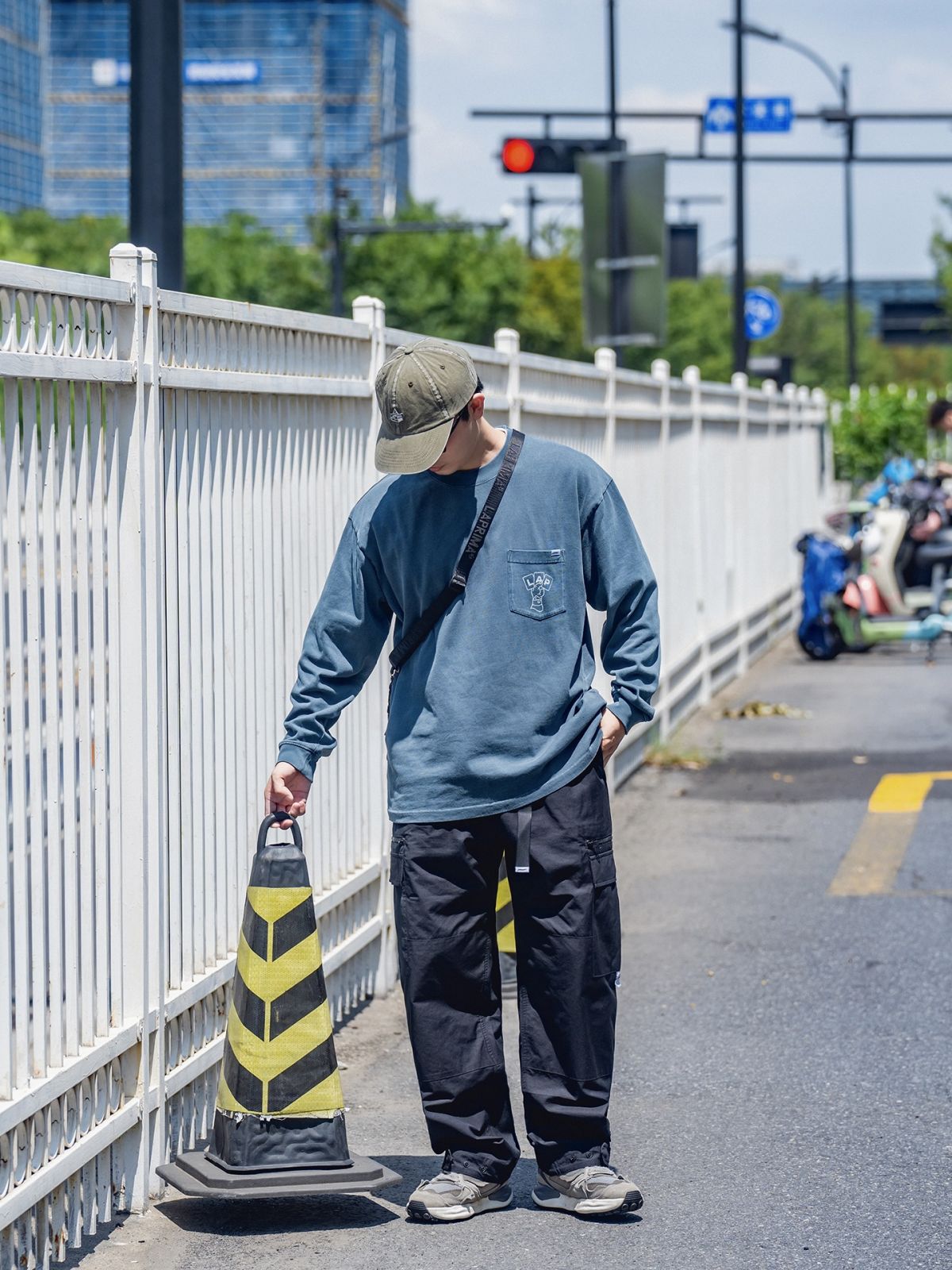 特製高彈螺紋領口經久耐用,口袋使用殘缺質感印花SLOGAN