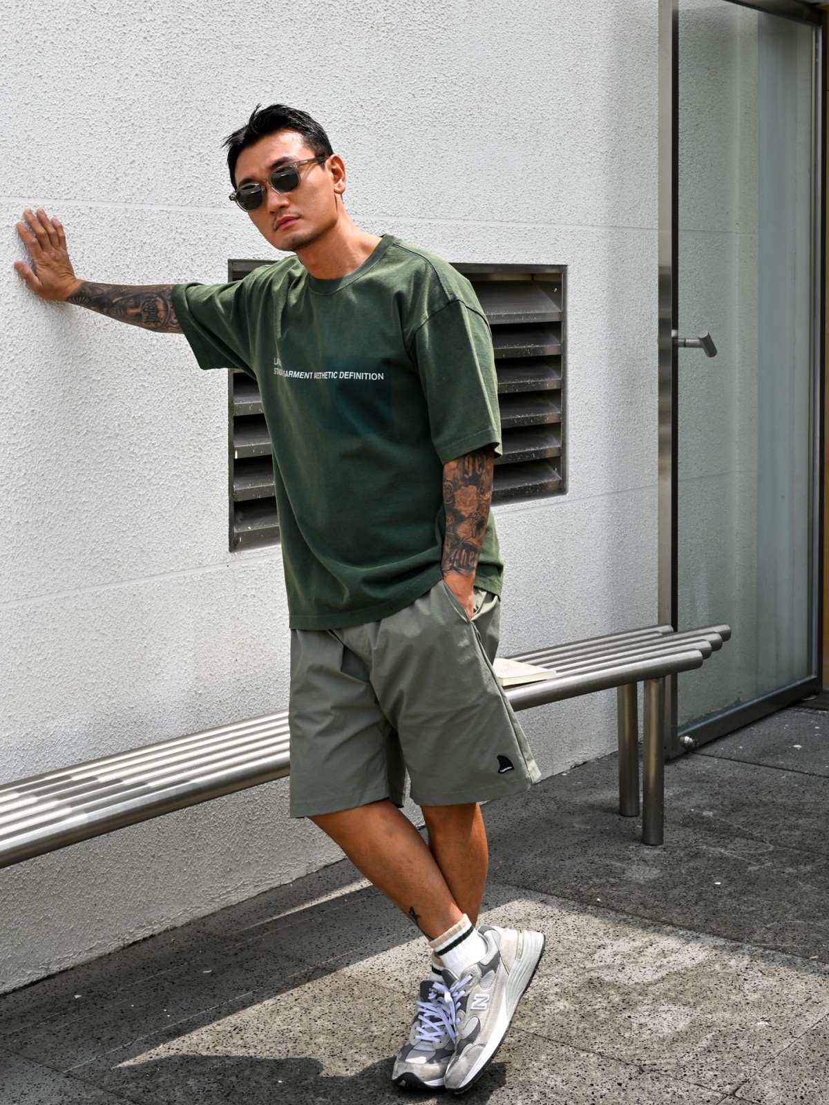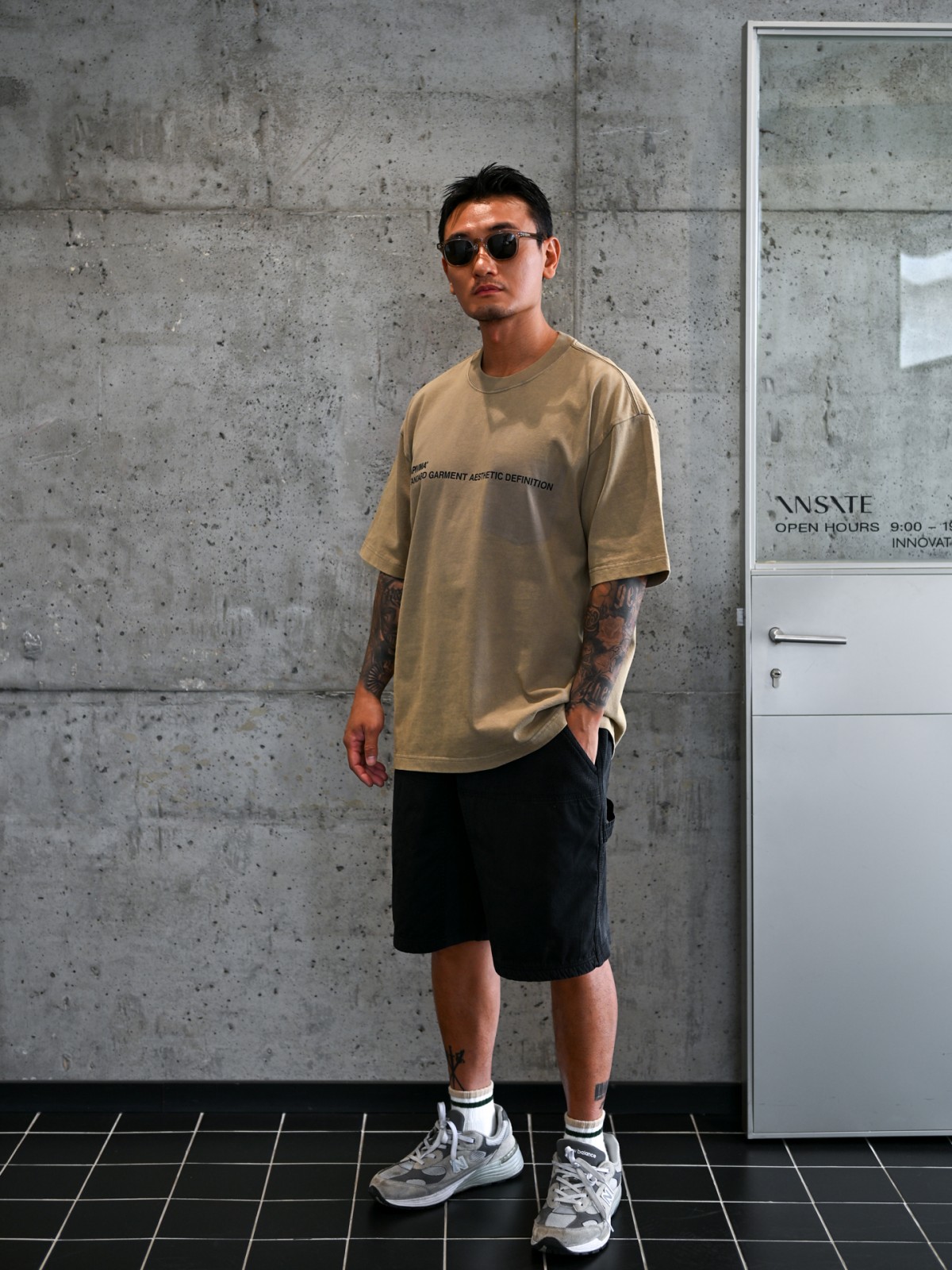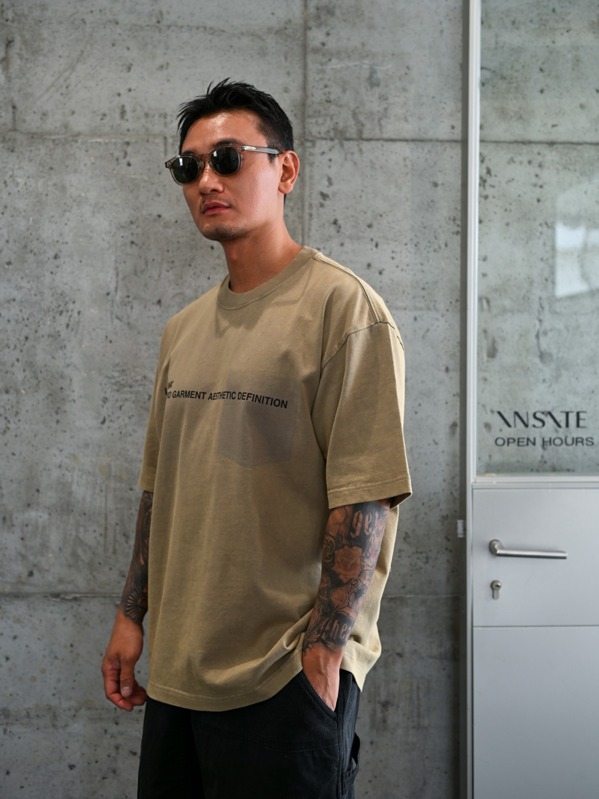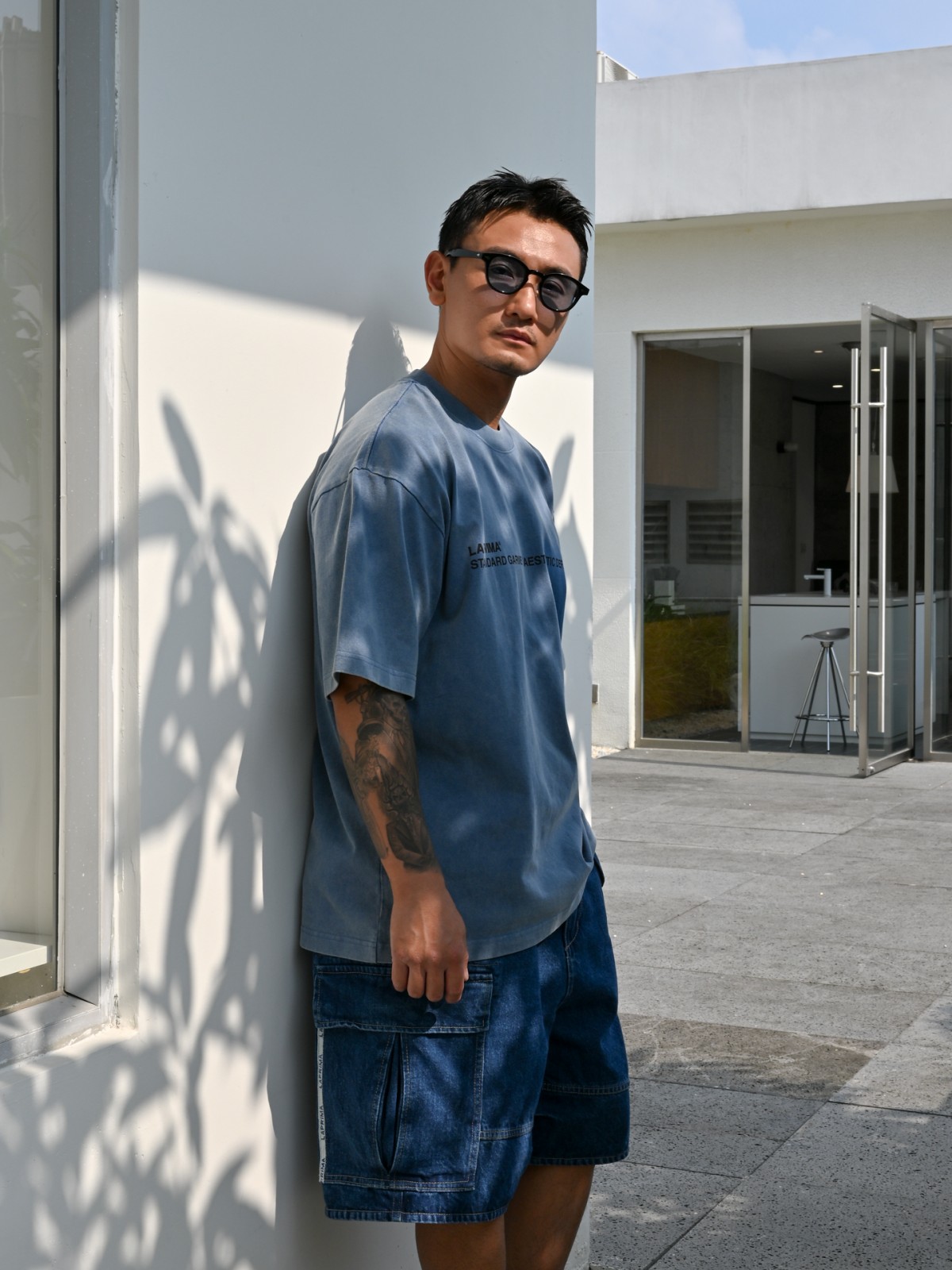 選用290g獨家開發的和紗肌理感全棉單面布製作,布料既厚實挺渴也透氣糯軟舒適。使用成衣舊化水洗工藝加雙重固色,令衣服色彩低飽和度並且不易再次褪色,胸前利用拆卸口袋留下的深色印記以及品牌logo印花作為點綴
